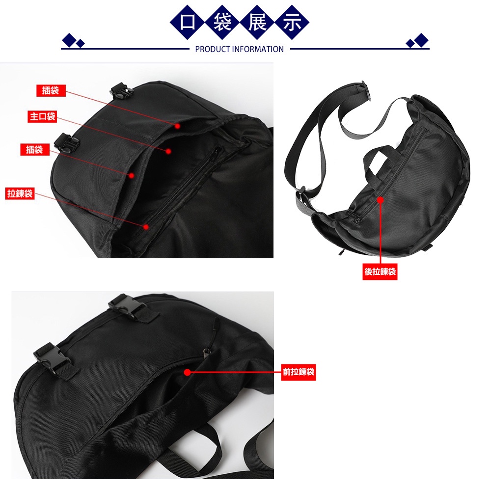 SPRING-尼龍大容量斜背包月牙包中性簡約插釦斜背包