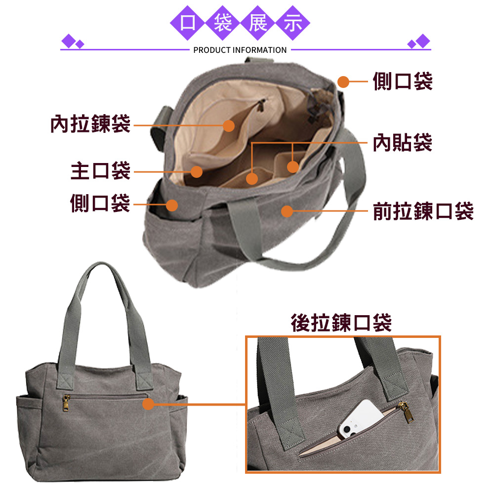 mini spring-日式簡約大容量托特帆布大方包-多色
