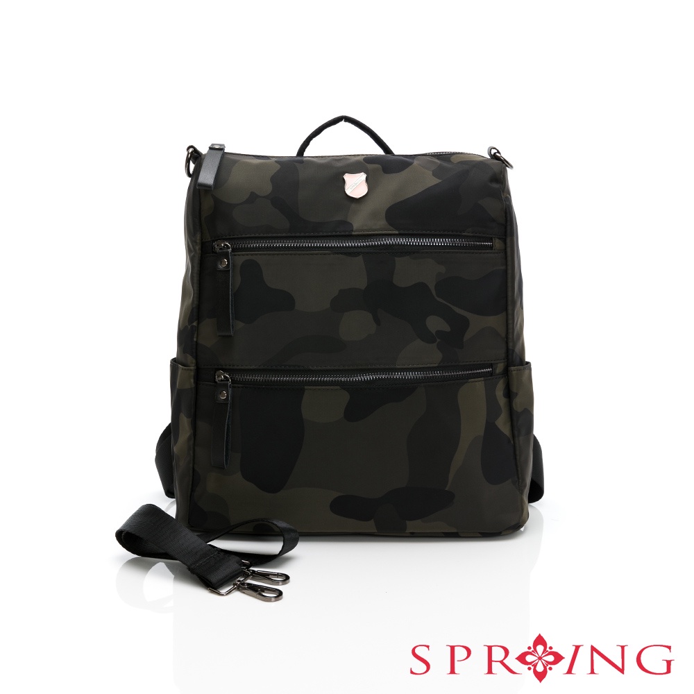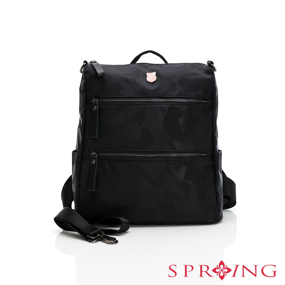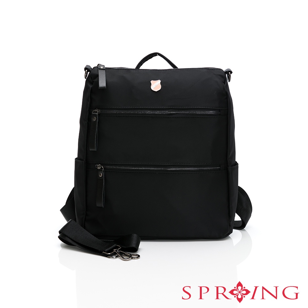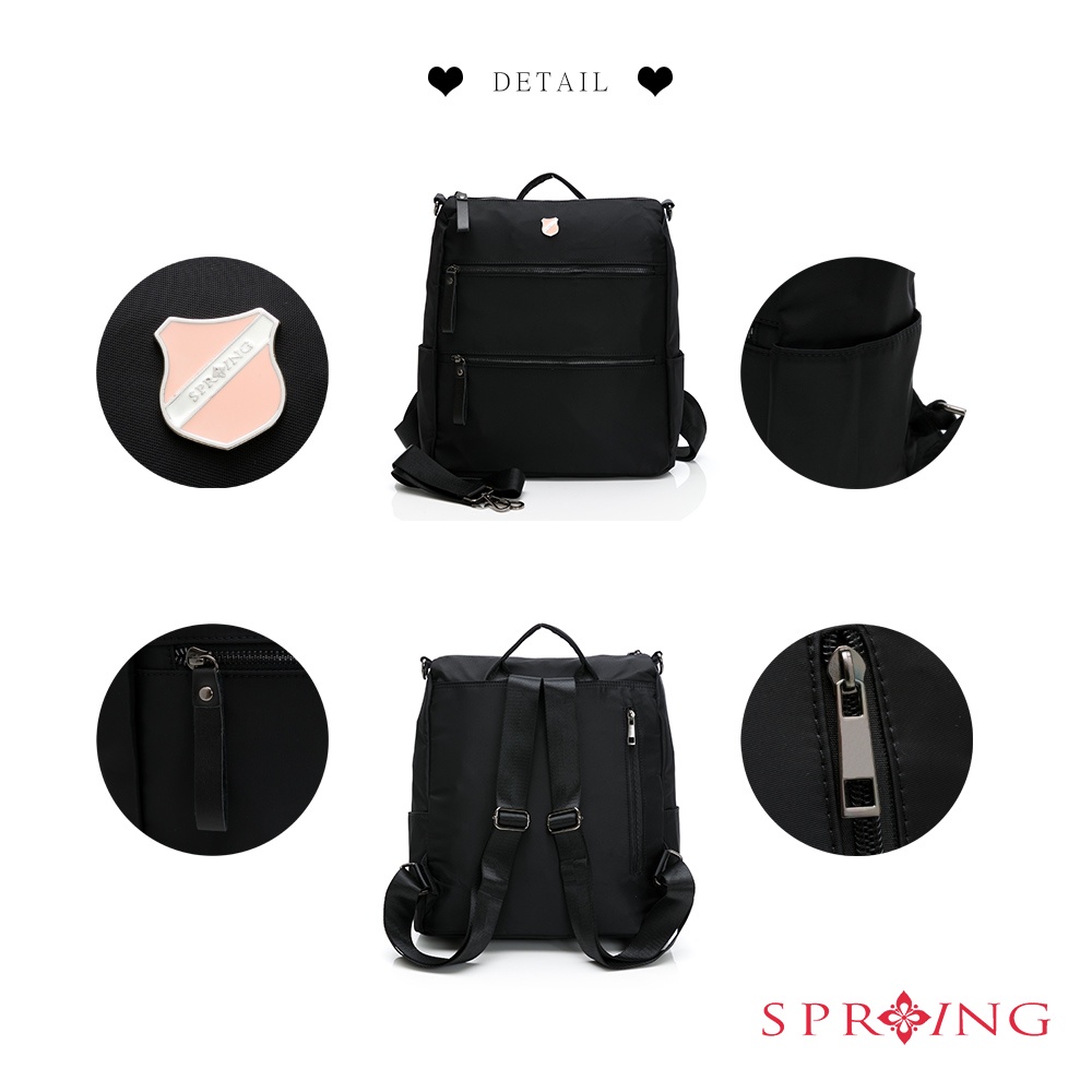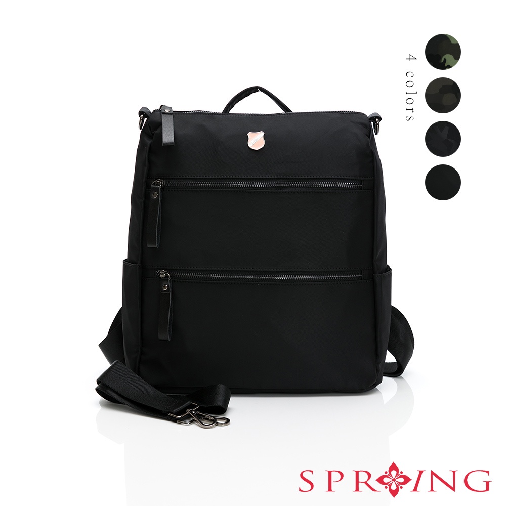 SPRING-尼龍雙拉鍊2WAY後背包尼龍肩背包-多色