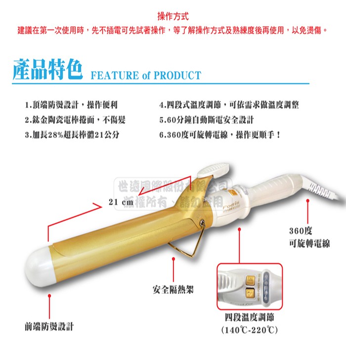 【Fodia富麗雅】GB 加長型雪白金鈦捲髮棒 25/32mm-特價品