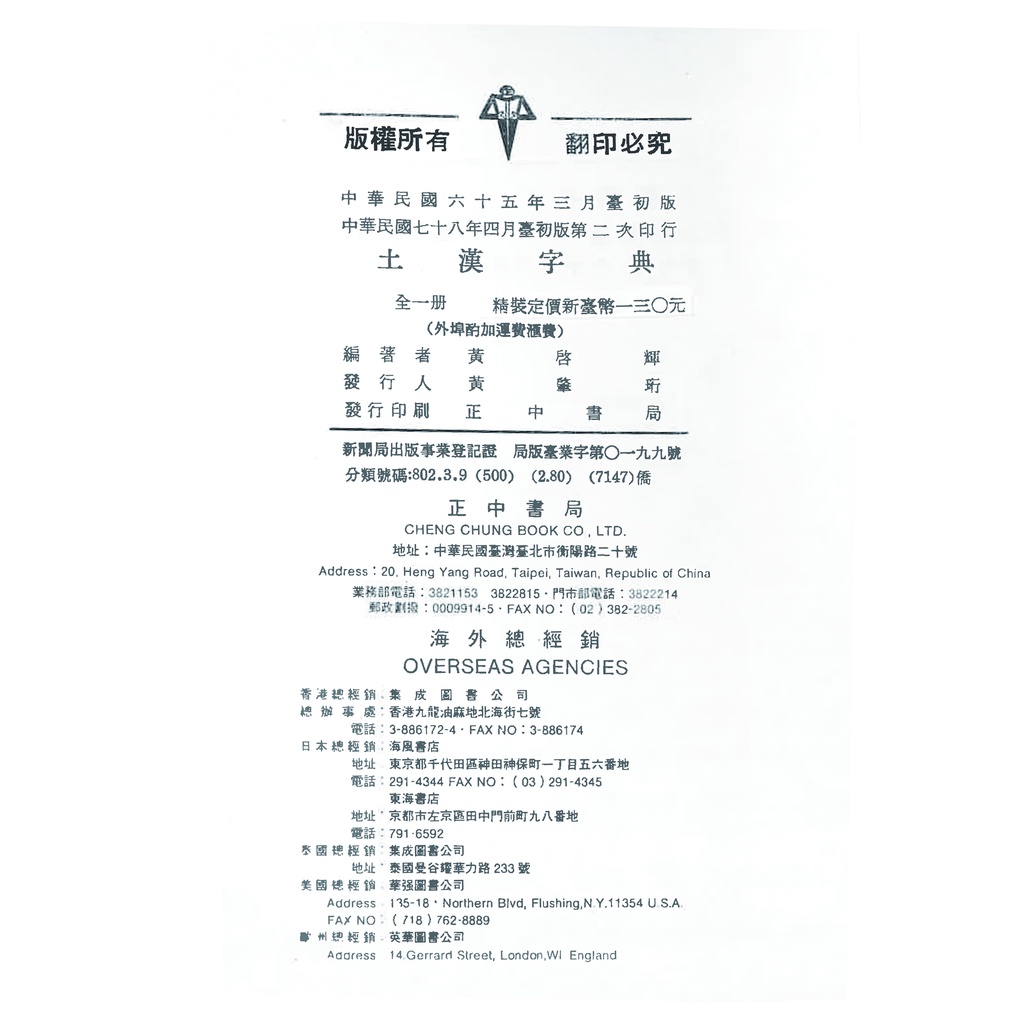土漢字典【1976年精裝版】|正中書局CCBC(風漬書,若不介意再下單)