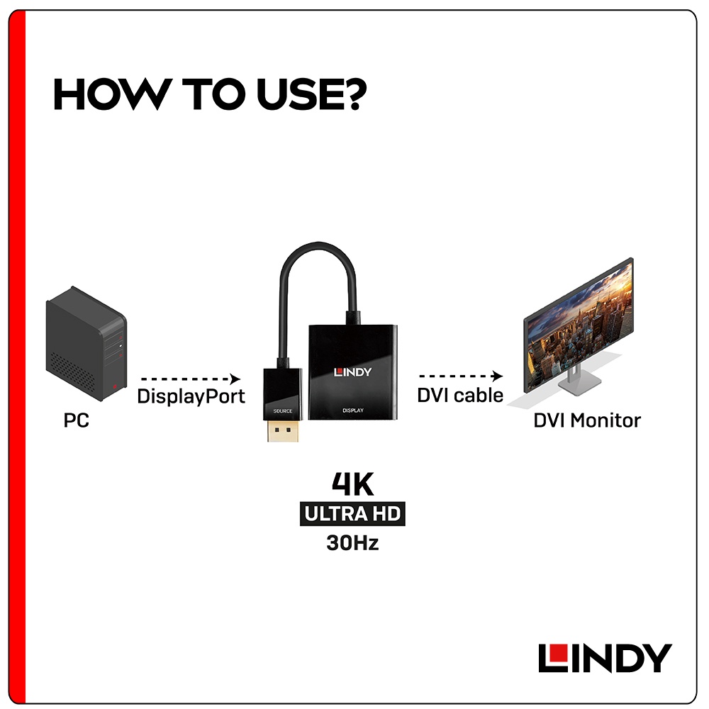 LINDY 林帝 主動式 DisplayPort 轉 DVI-D 轉接器 (41734)