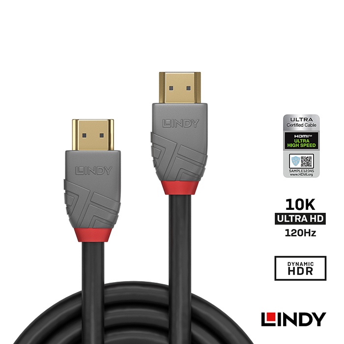 LINDY 林帝 ANTHRA系列 HDMI 2.1(TYPE-A) 公 TO 公 傳輸線,1M (36952)
