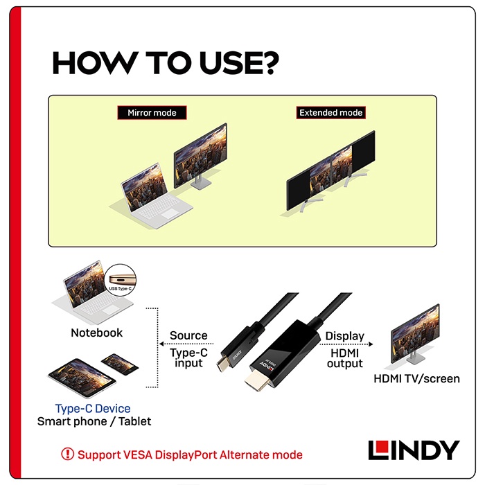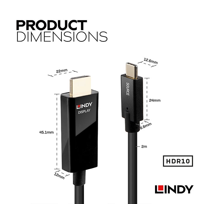 LINDY 林帝 主動式USB3.1 TYPE-C TO HDMI 2.0 HDR轉接線 2M (43292)