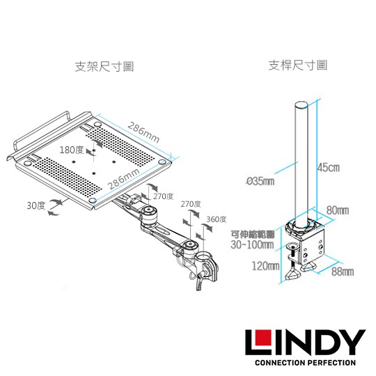 LINDY 林帝 台灣製 筆電/平板 長懸臂式支架+45cmC型夾鉗式支桿 組合 (40692+40699)