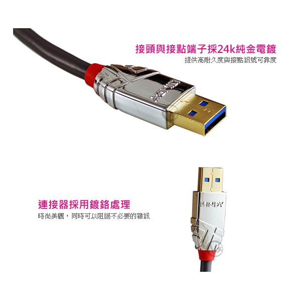 LINDY 林帝 CROMO USB3.0 Type-A 公 to 公 傳輸線 1m (36626)