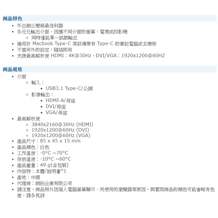 LINDY 林帝 主動式 USB3.1 Type-C to HDMI/DVI/VGA 三合一轉接器 (43273)