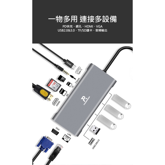 PowerRider HB-P12 十一合一PD充電傳輸集線器 鈦金灰