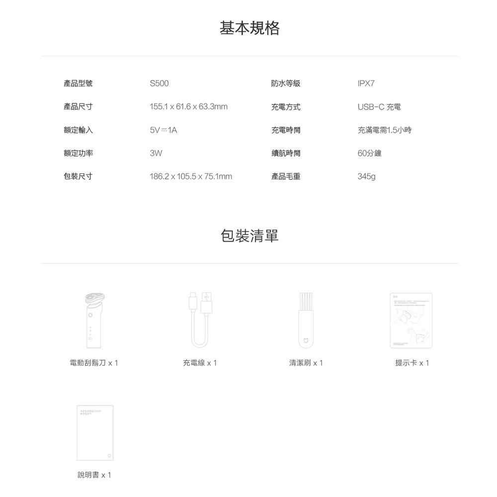 【米家優品】s500 小米有品 電動Type-c 充電便攜剃鬚刀 刮鬍刀-