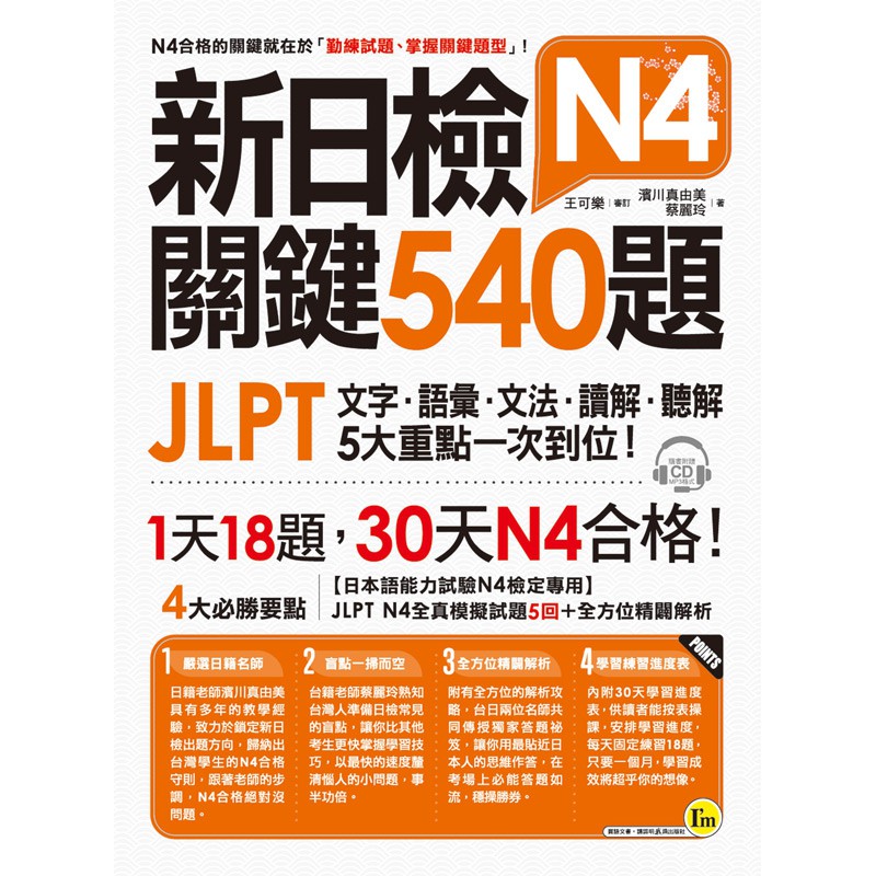 新日檢JLPT N4 關鍵540題:文字、語彙、文法、讀解、聽解一次到位(5回全真模擬試題+解析兩書+CD)
