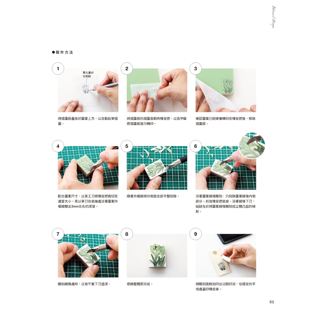 手繪植物風橡皮章應用圖帖:不刻印章,作為刺繡圖案、布花&蕾絲編織的參考圖也OK!