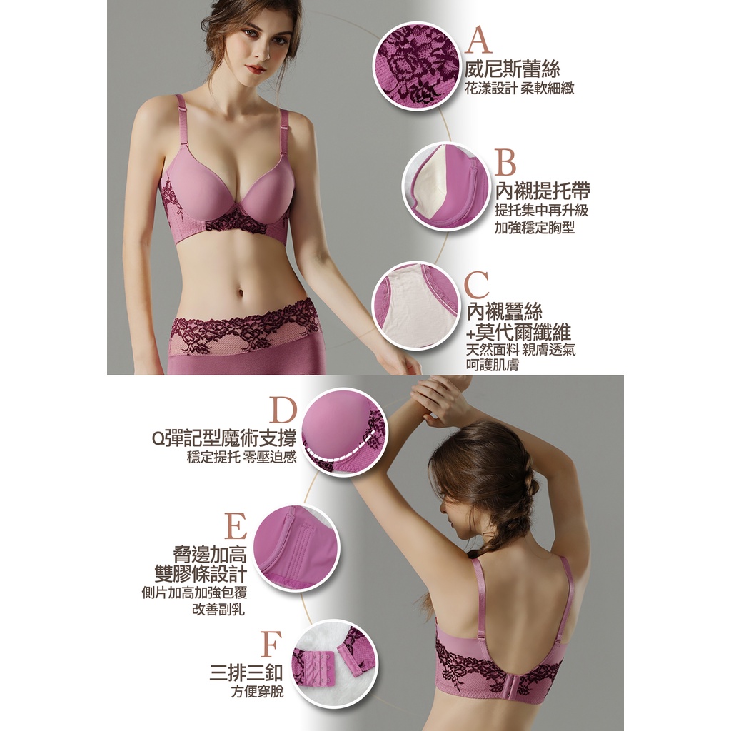Solara 親膚舒適天然蠶絲+莫代爾 雲朵軟鋼圈內衣-紫1套 2106 紫色