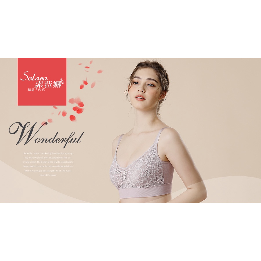 【Solara】零負擔 石墨烯 抑菌能量 蕾絲無鋼圈裸氨內衣9928