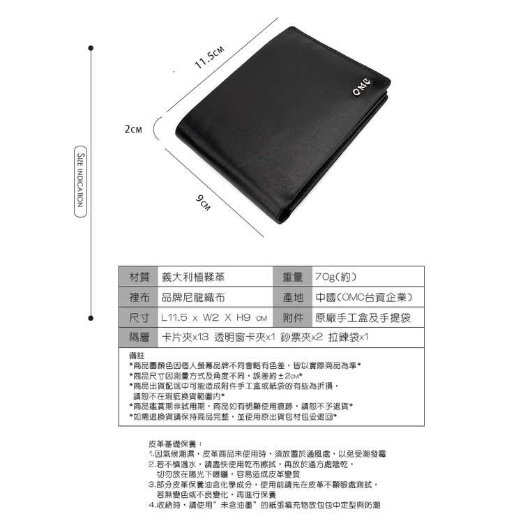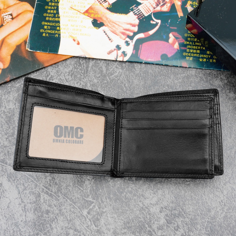 【OMC】義大利植鞣13卡1照左右翻牛皮短夾-黑色