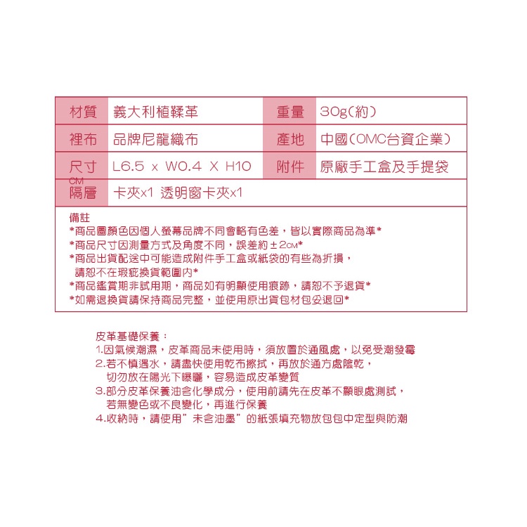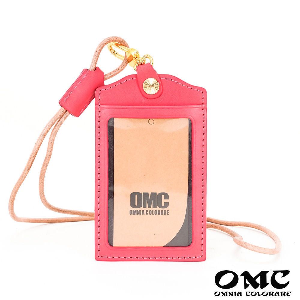 【OMC】義大利植鞣革職人通用直式牛皮證件套悠遊卡套(胭脂粉)