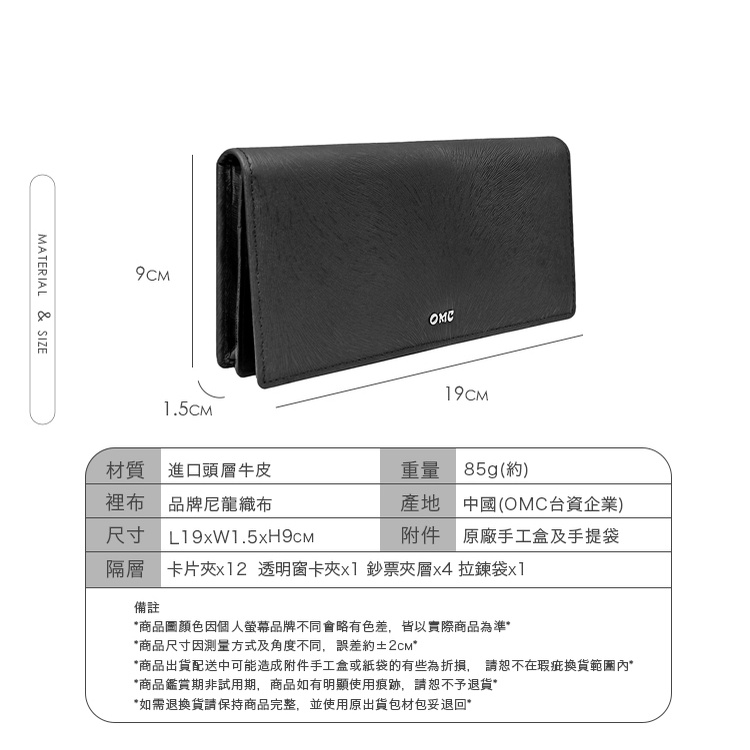 【OMC】12卡1照-馬鬃紋-加圍牛皮長夾28809-黑色