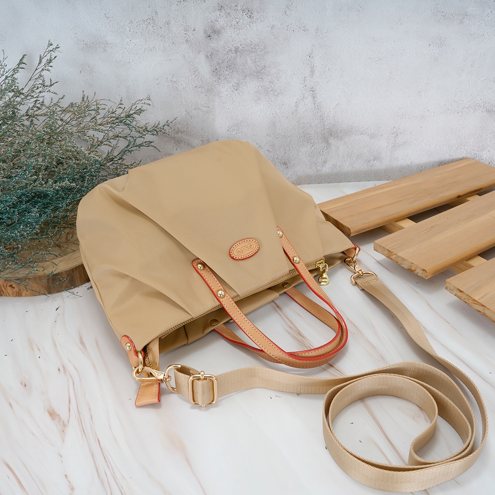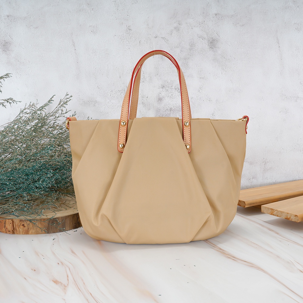 【OMC】抓皺南瓜包手提斜背兩用包2959(奶茶色)