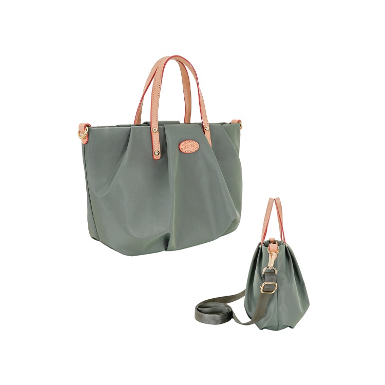 【OMC】抓皺南瓜包手提斜背兩用包82959(灰綠)