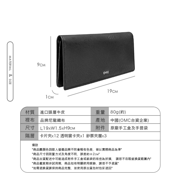 【OMC】12卡1照-馬鬃紋-薄型牛皮長夾28811-黑色