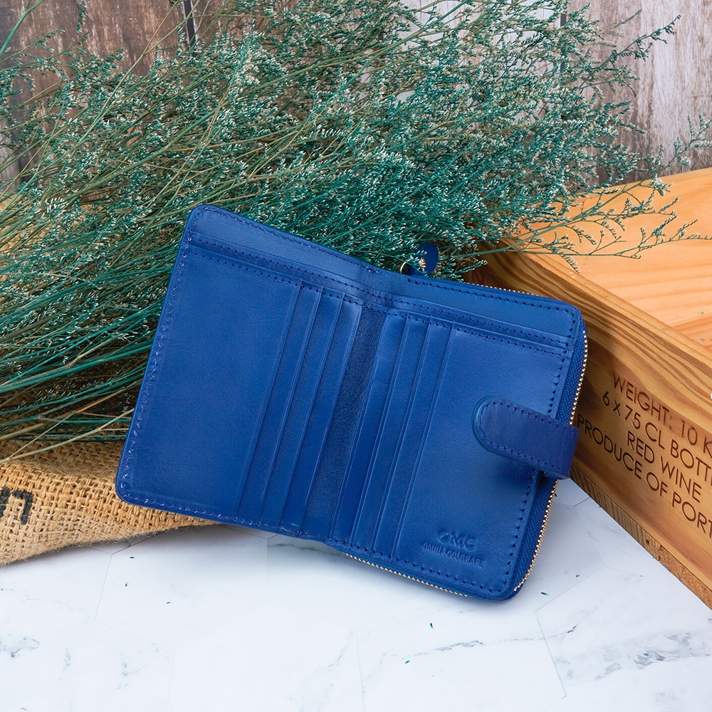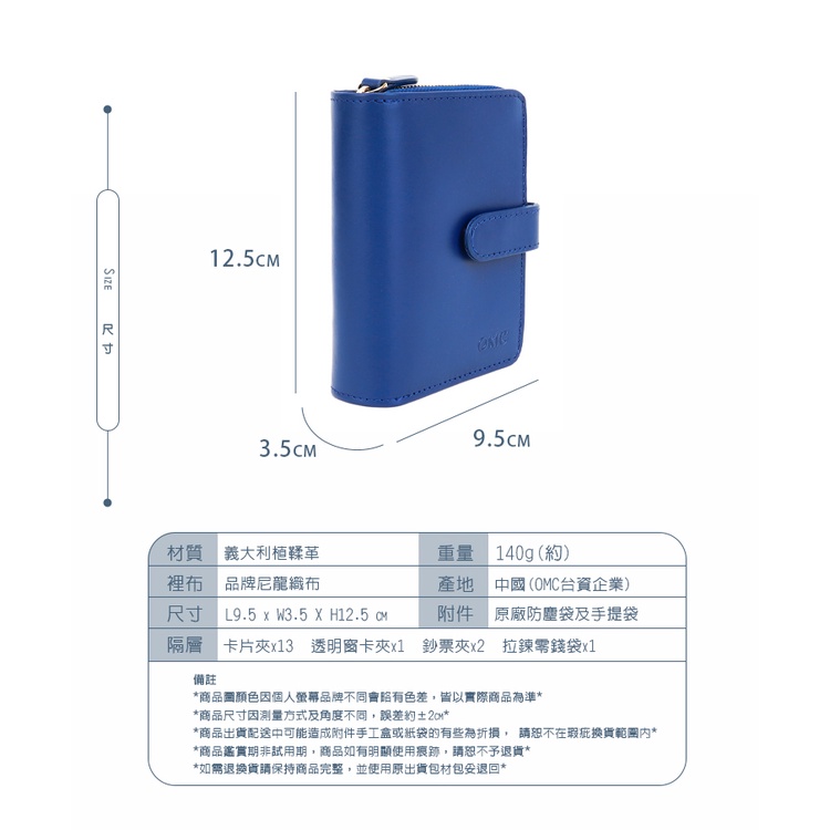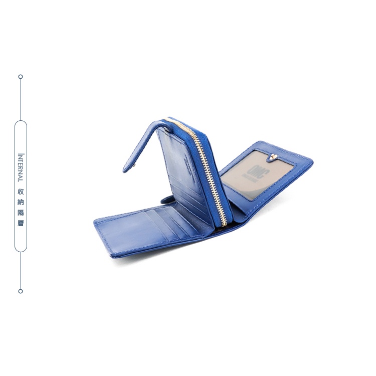 【OMC】義大利植鞣革雙面卡層舌扣牛皮中夾95142-天藍