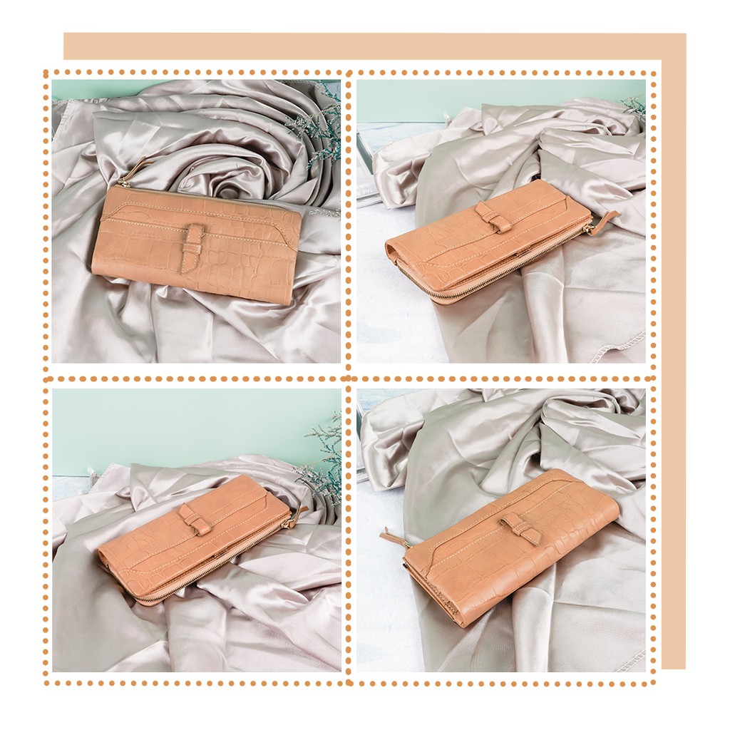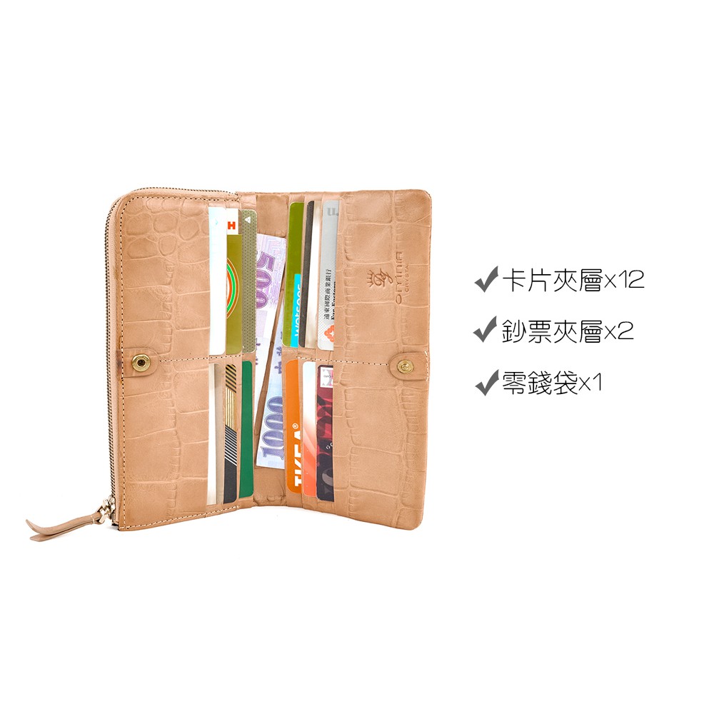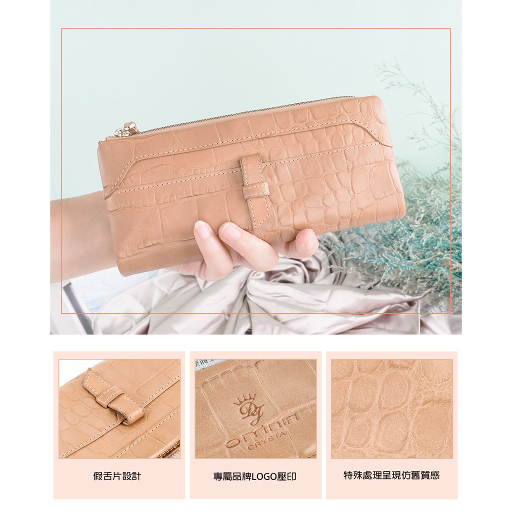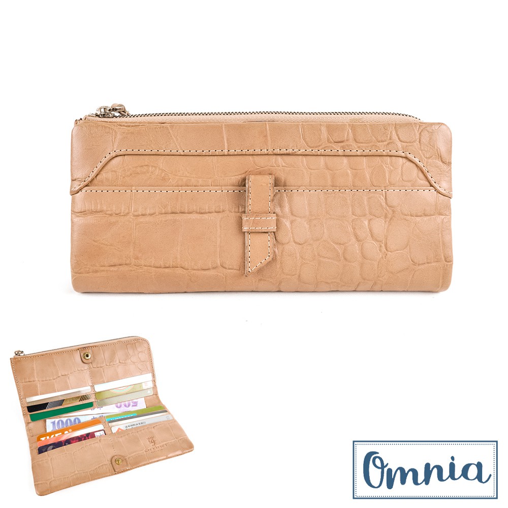【OMNIA】TWO-TONE仿舊岩石壓紋牛皮長夾-棕色