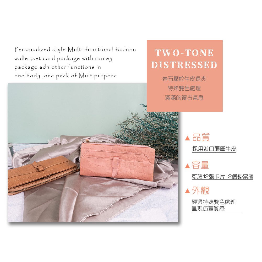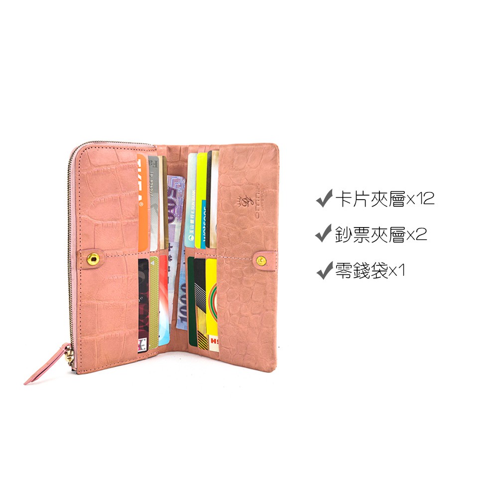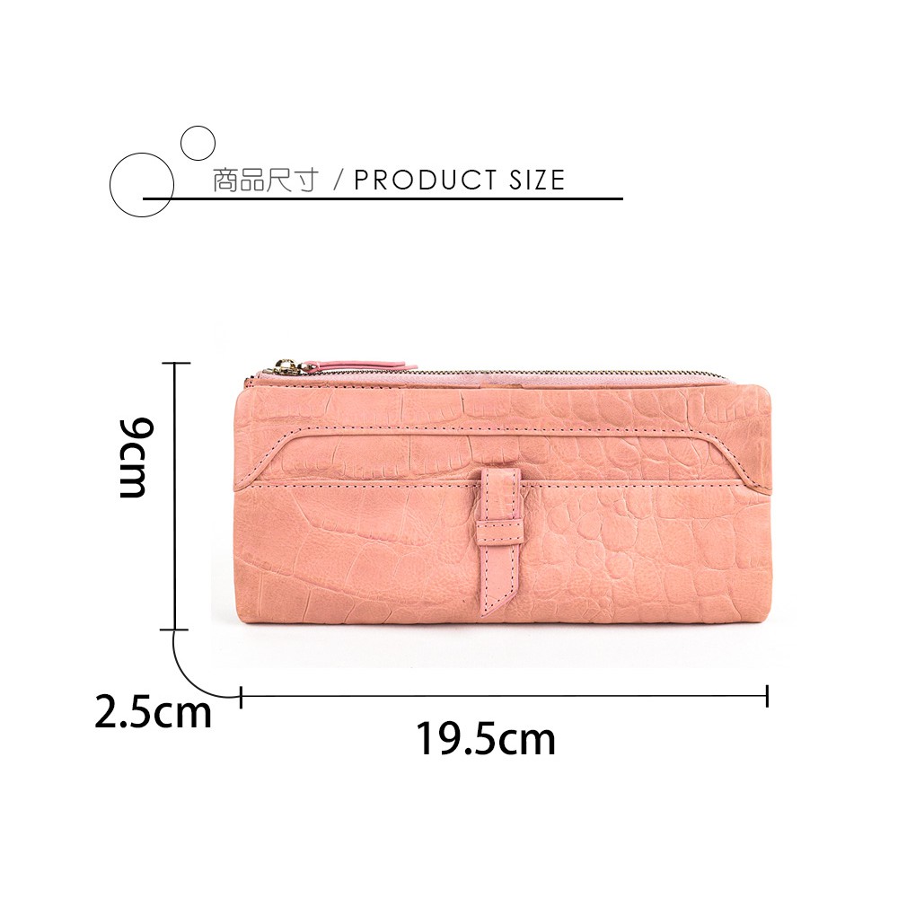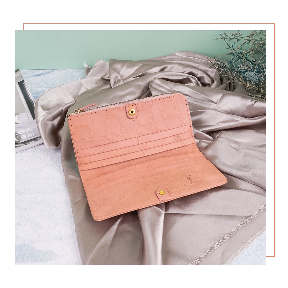 【OMNIA】TWO-TONE仿舊岩石壓紋牛皮長夾-粉色