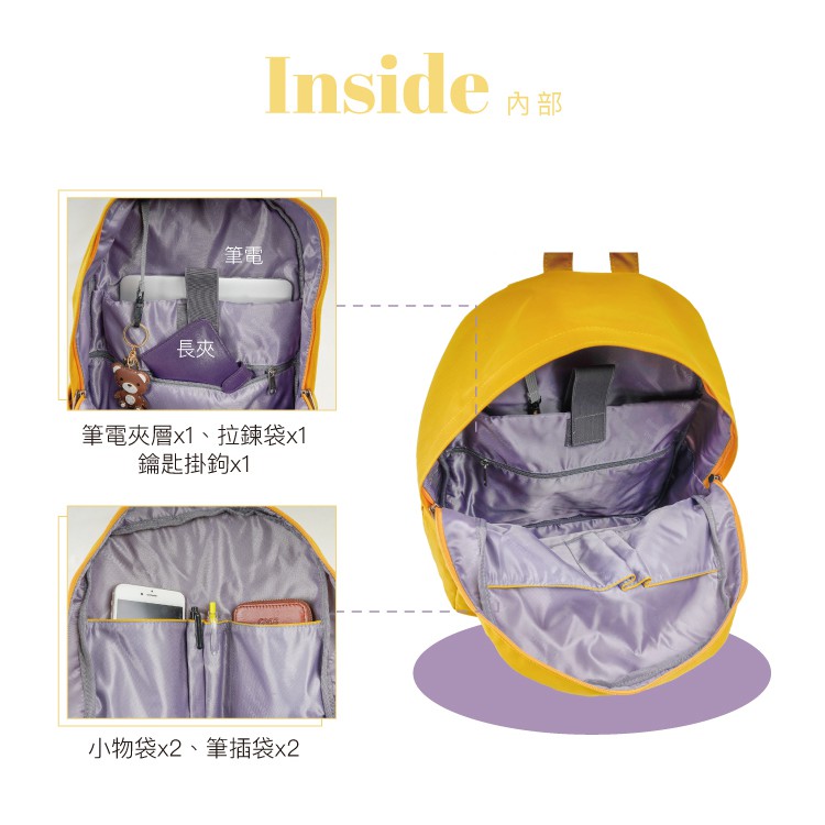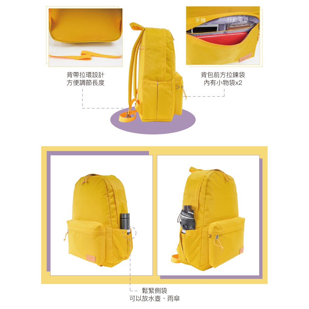 【OMNIA】水洗率性大容量減壓雙肩NB後背包(黃色)