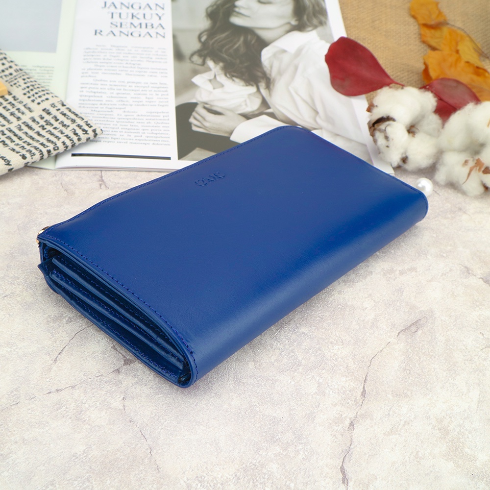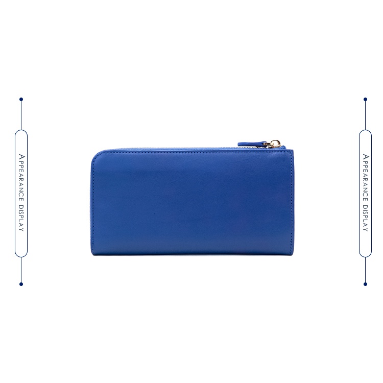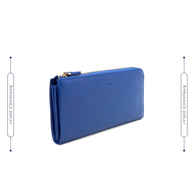 【OMC】義大利植鞣革18卡2照L拉鍊大容量牛皮長夾(天藍)
