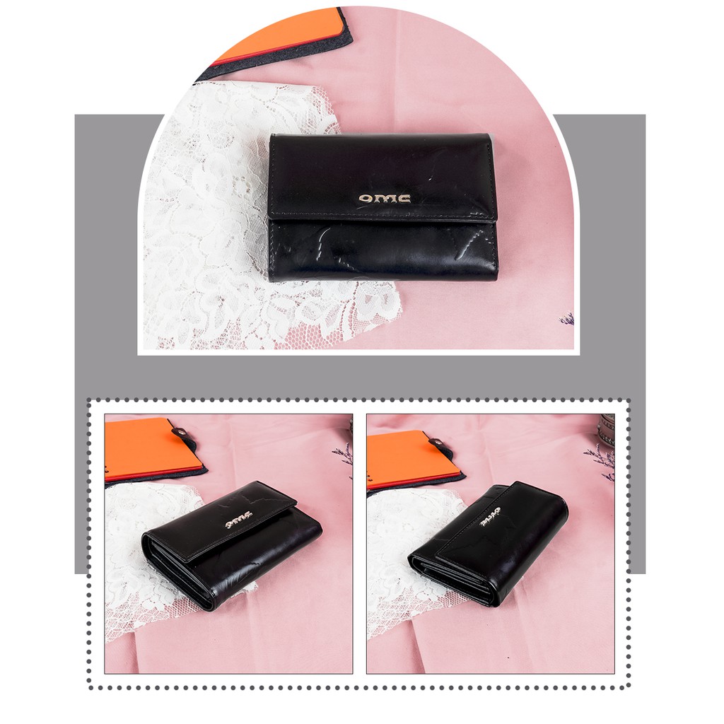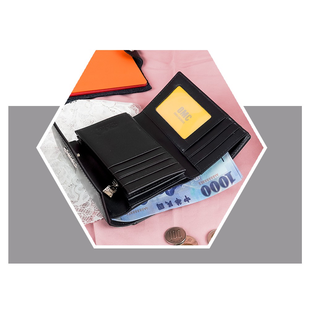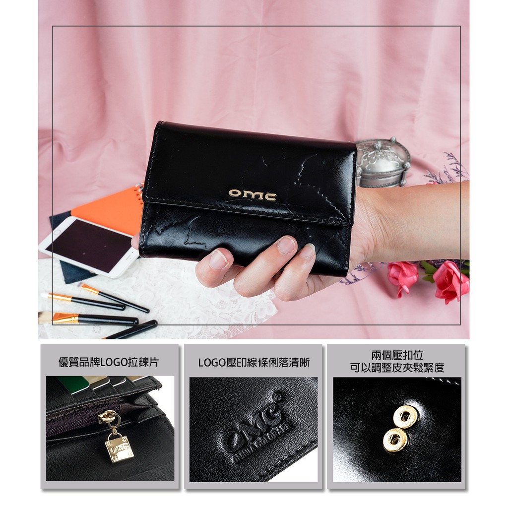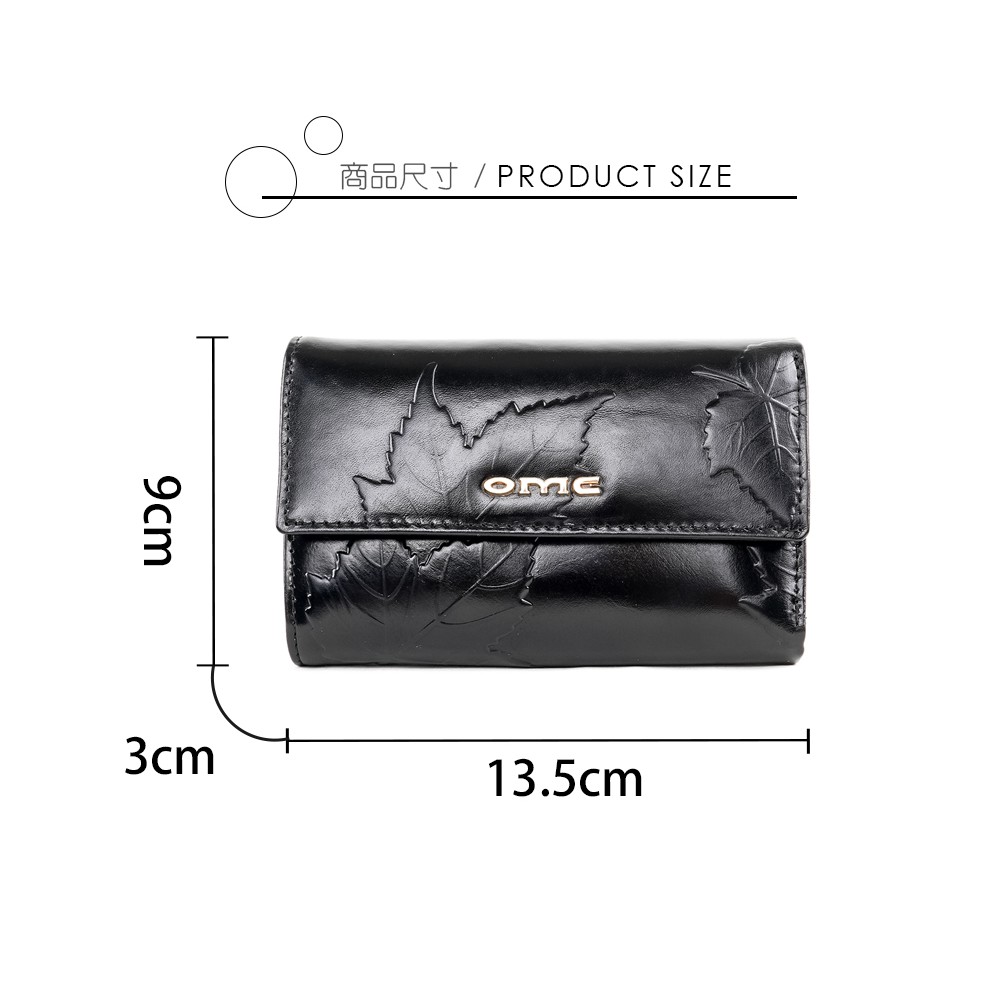 【OMC】12卡1照迷人楓采三折牛皮中夾-黑色