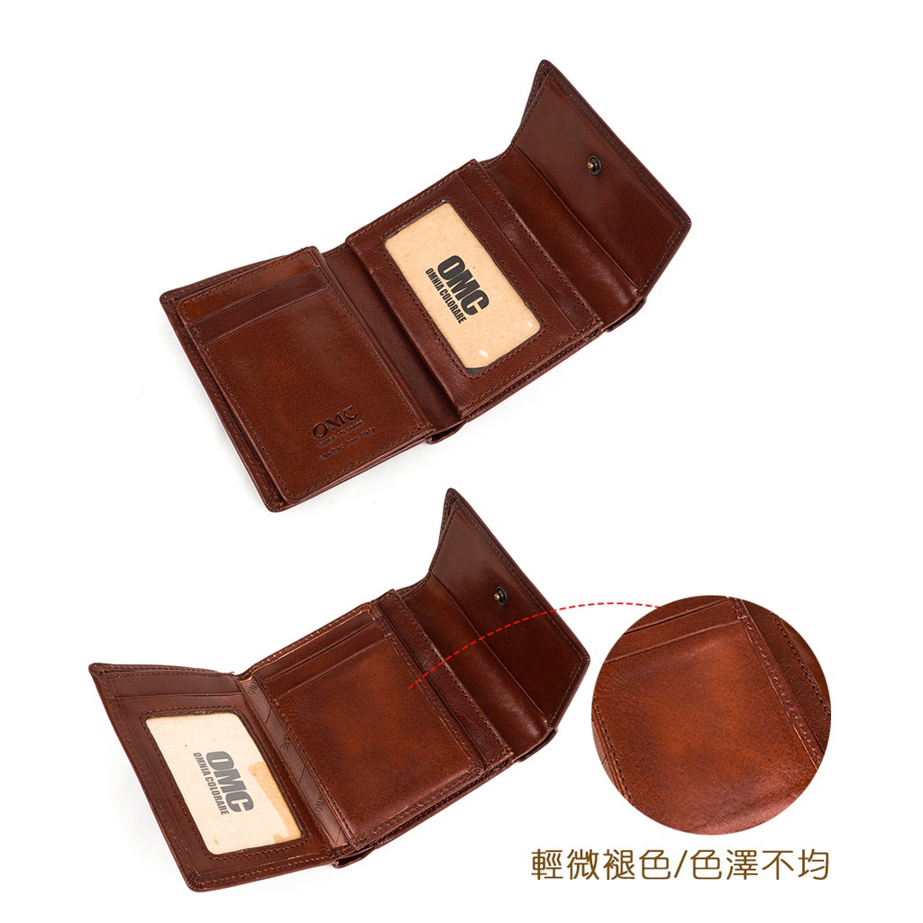 【OMC】NG福利品-皆為新品非二手品-原廠價2680-11卡2照植鞣革活頁三折牛皮短夾