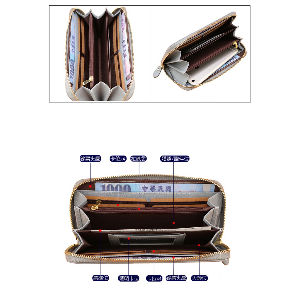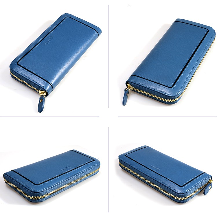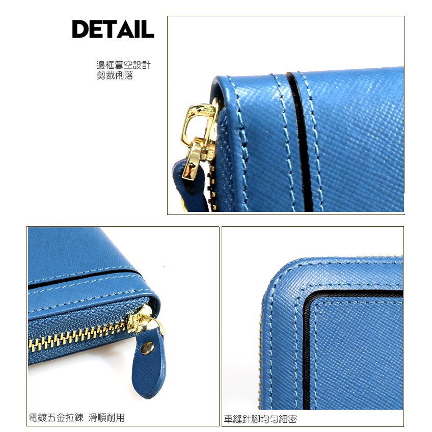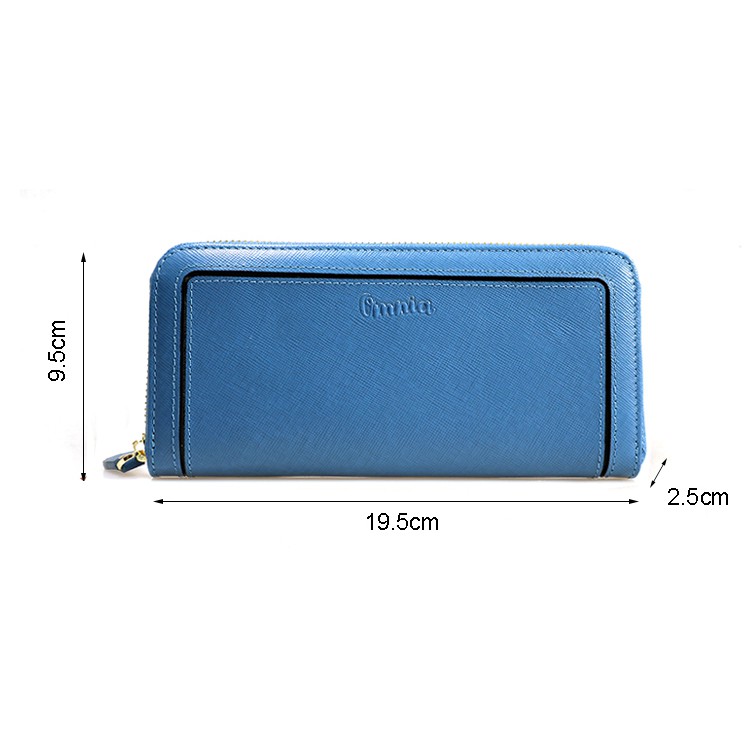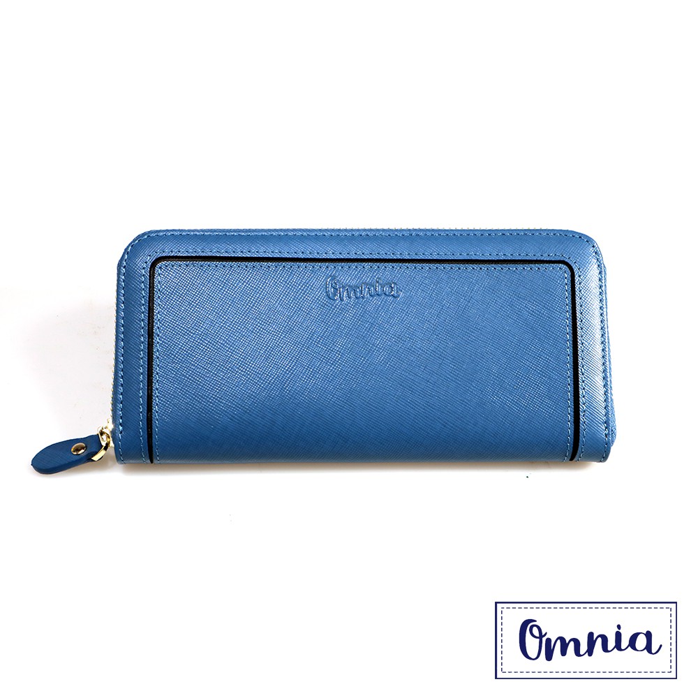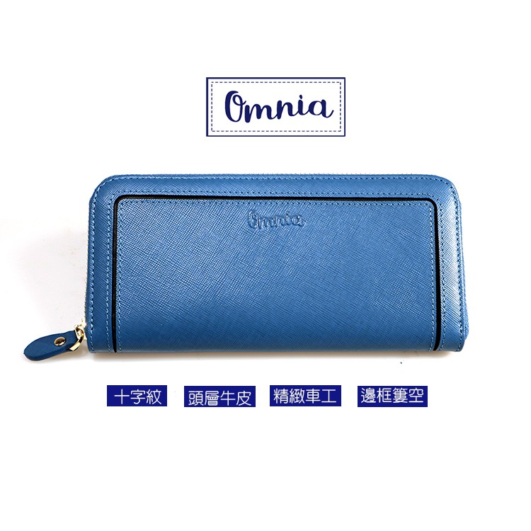 【OMNIA】日系簍空邊框十字紋牛皮拉鍊長夾