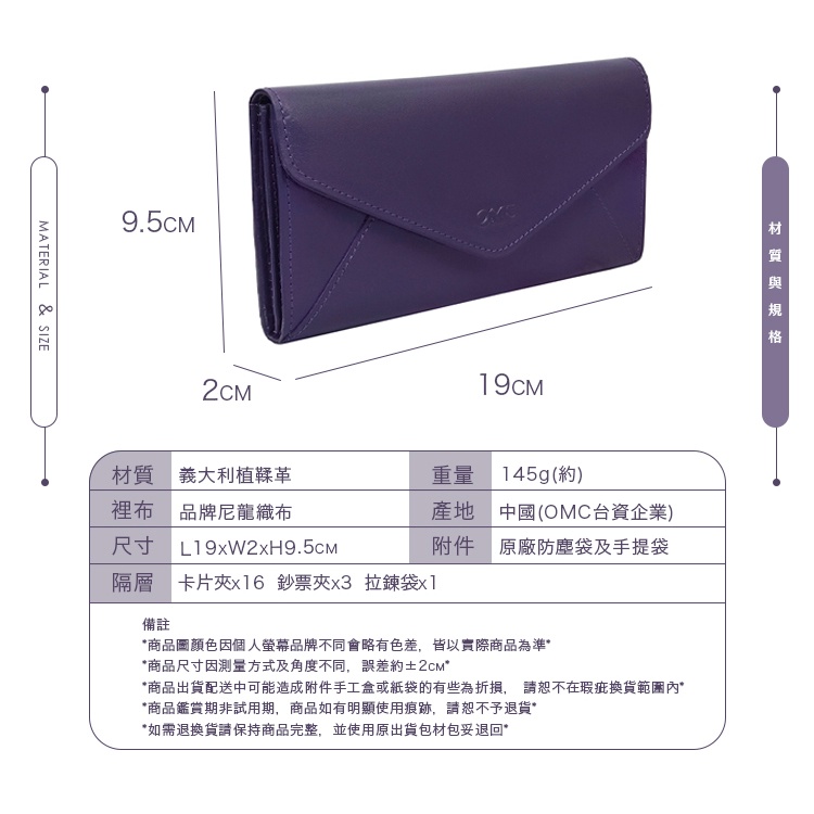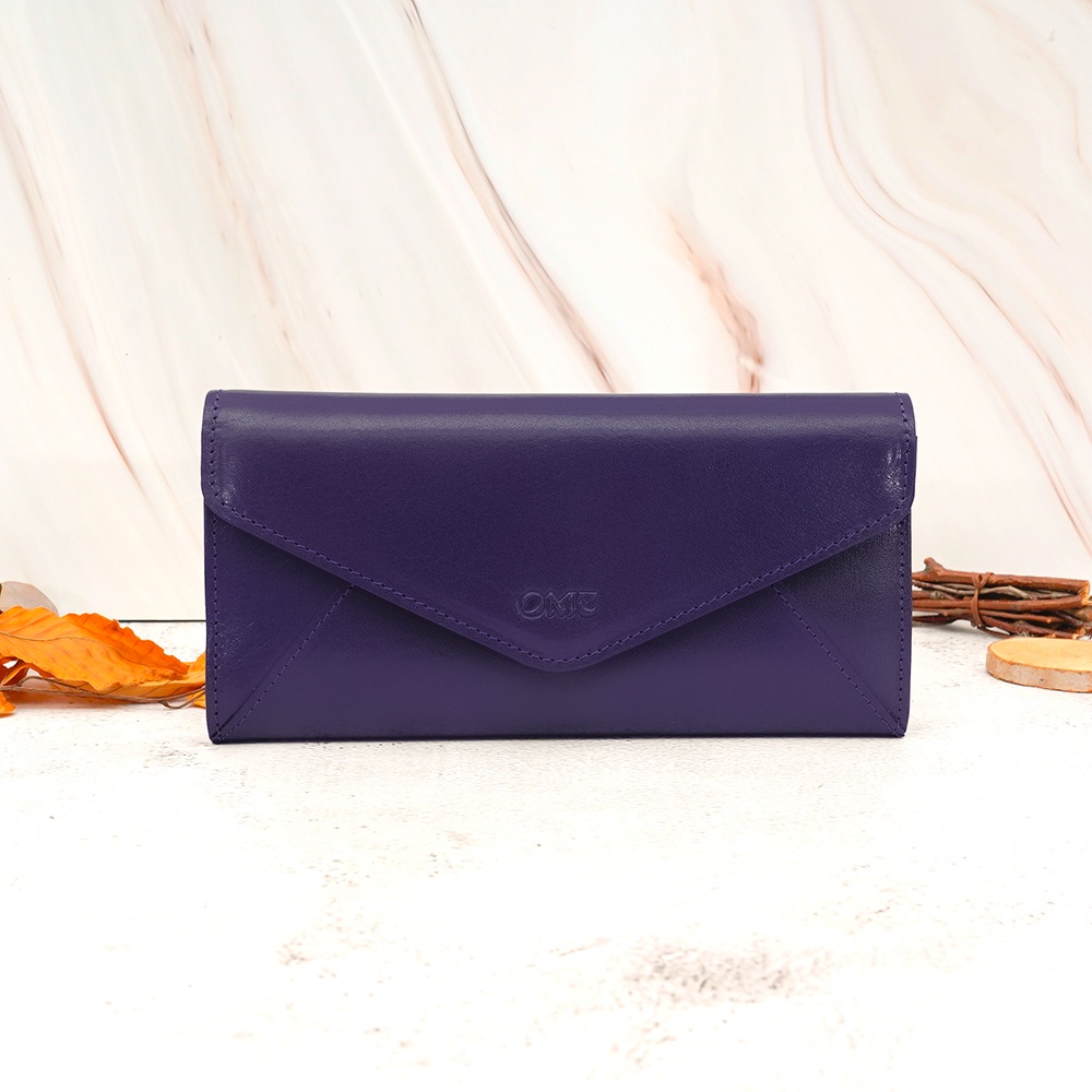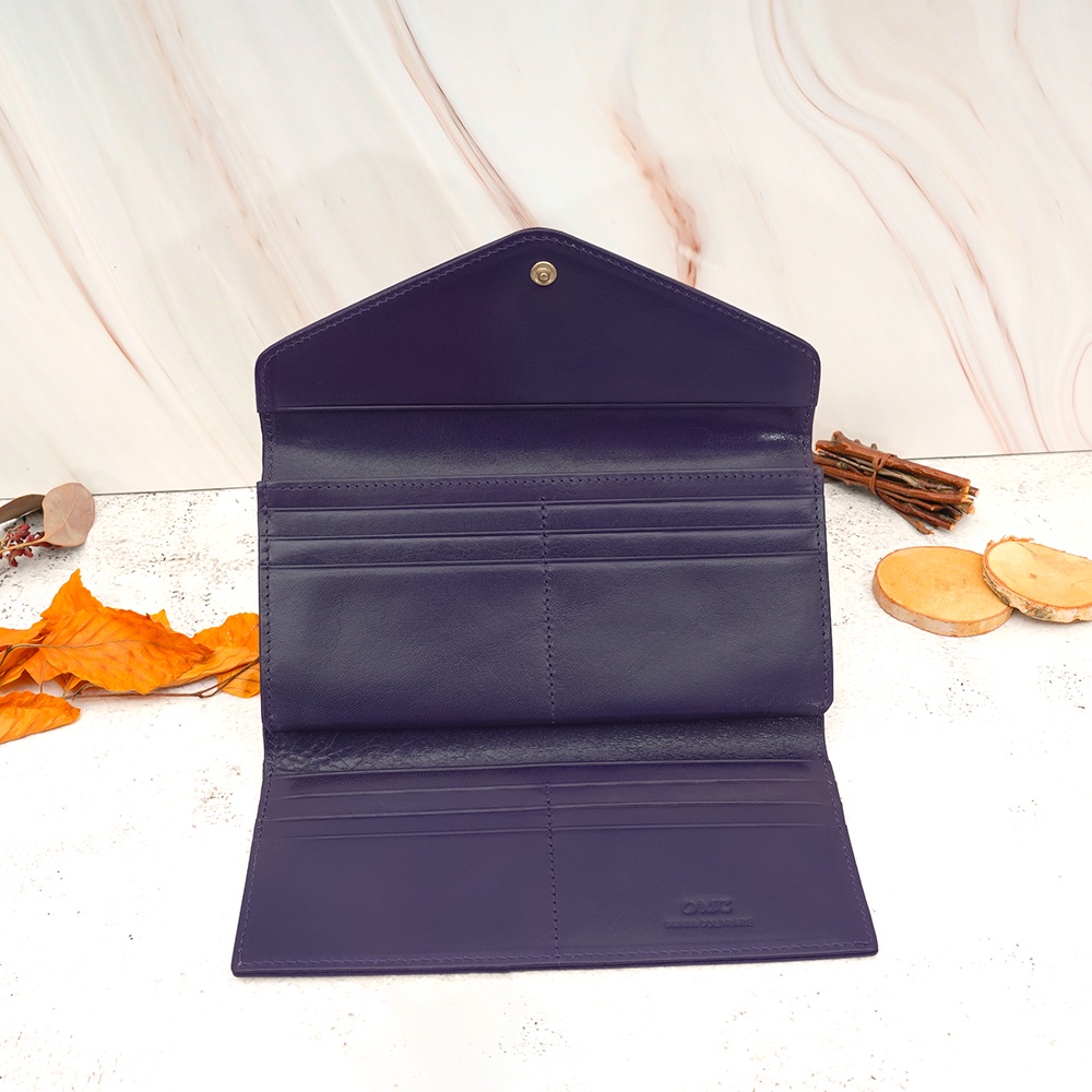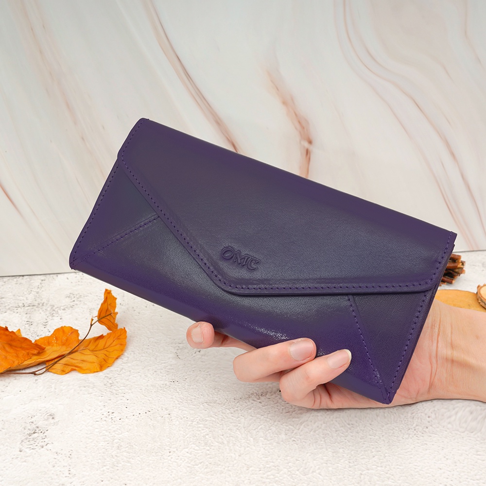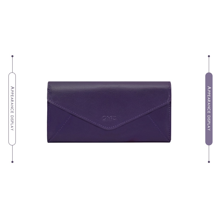 【OMC】義大利植鞣革信封式三折牛皮長夾95115(紫色)