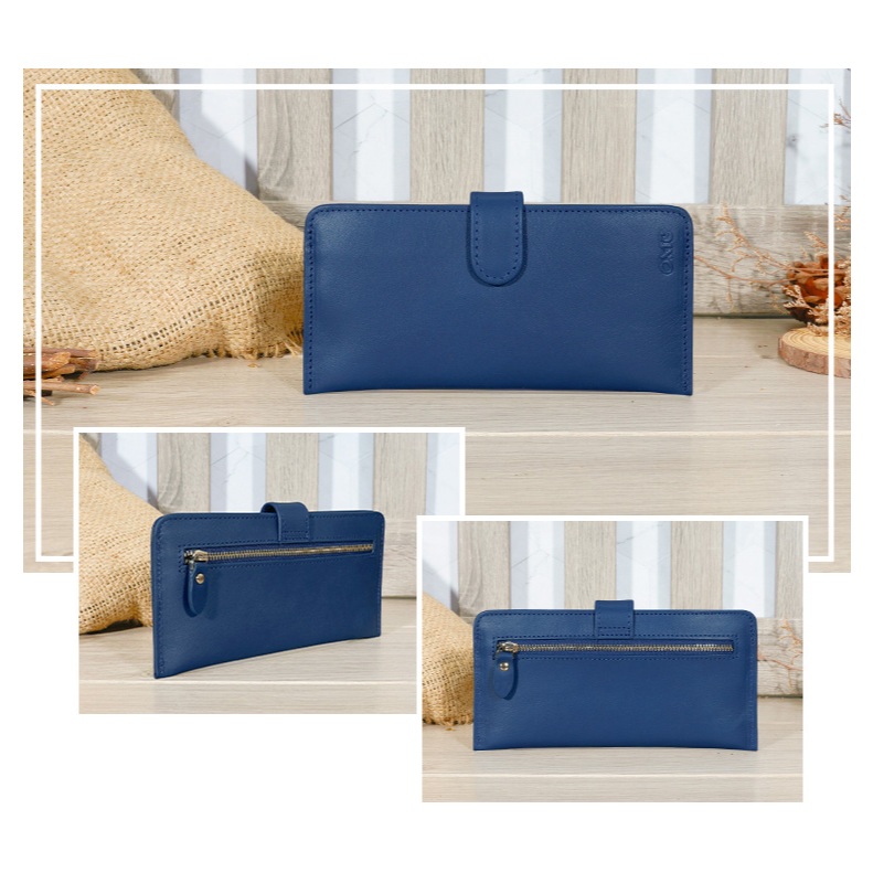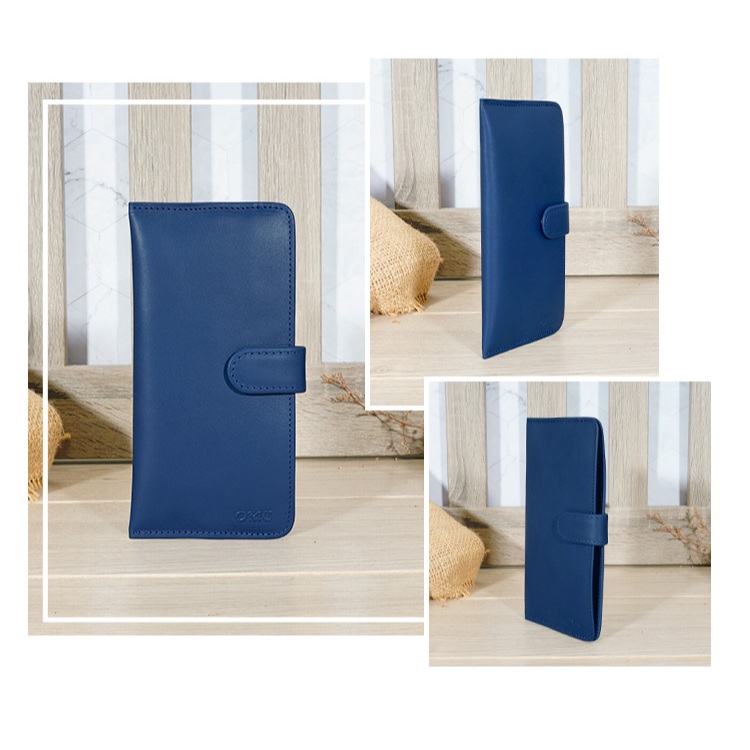 【OMC】14卡1照植鞣革輕薄簡約牛皮長夾95105(琉璃藍)