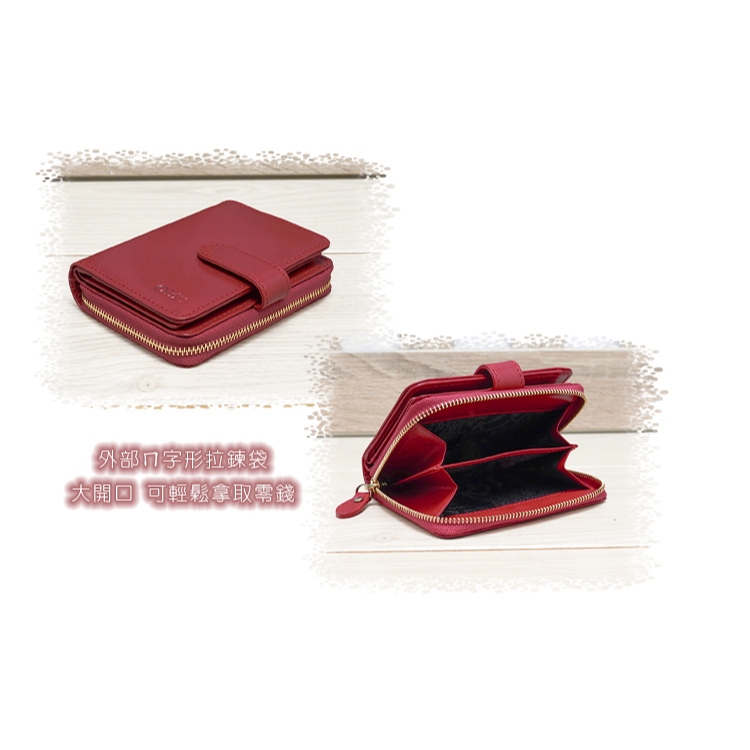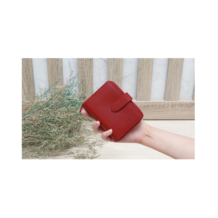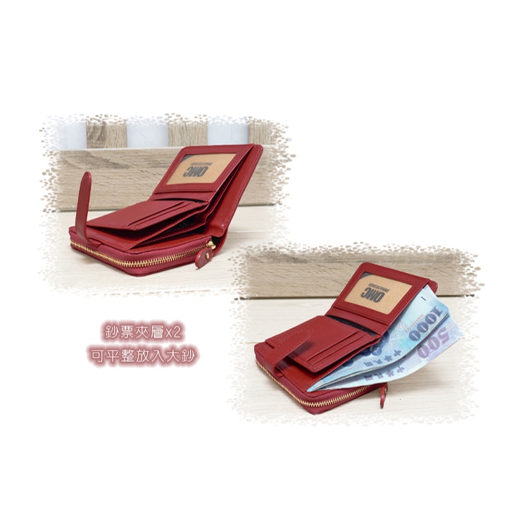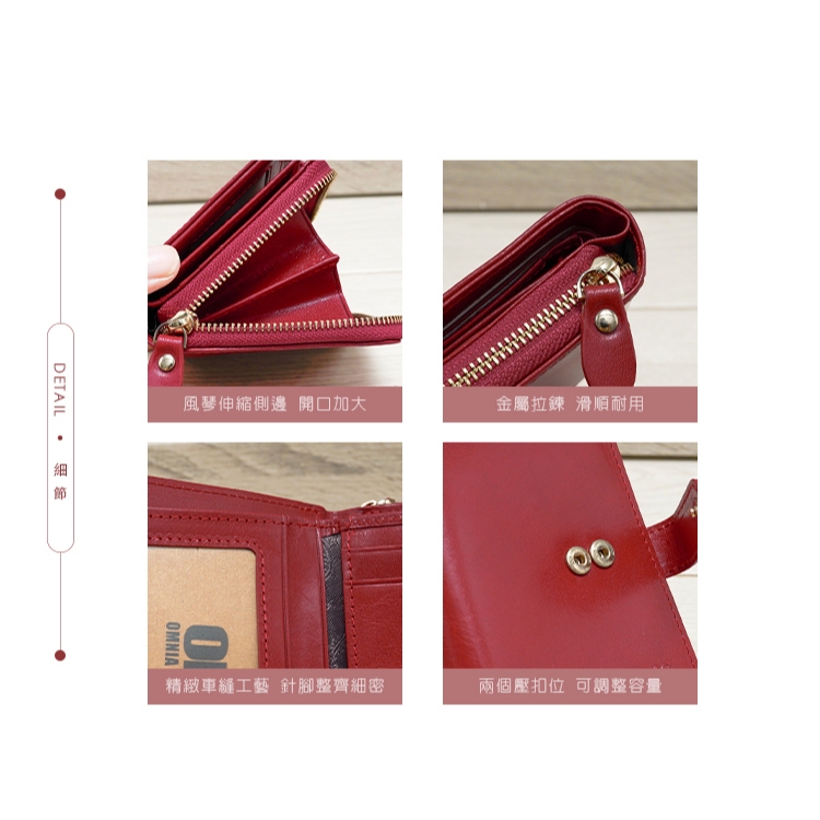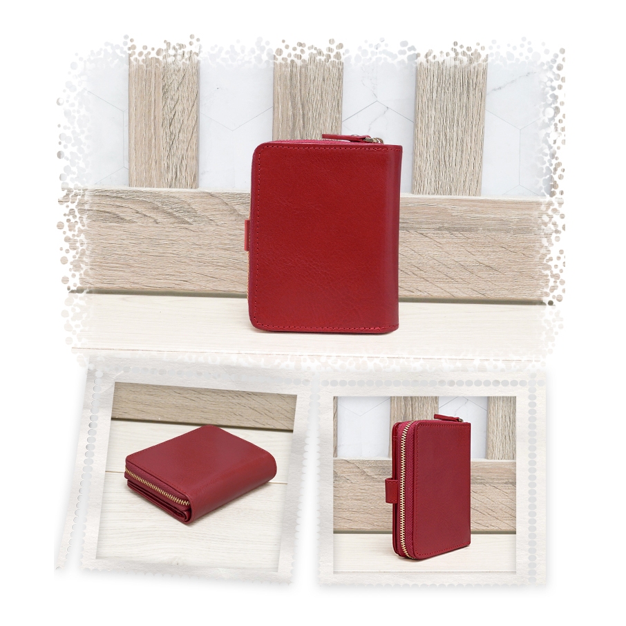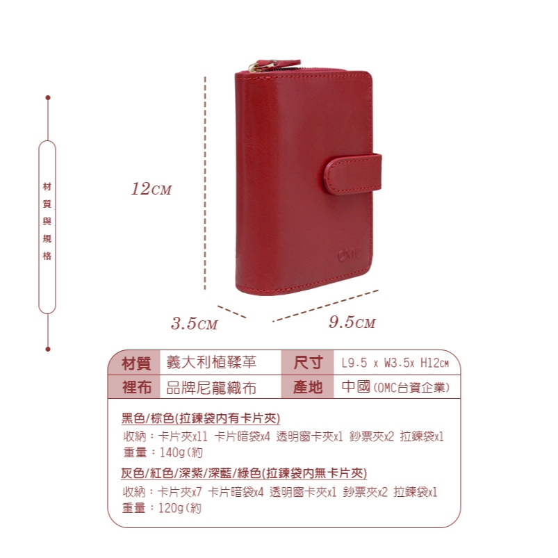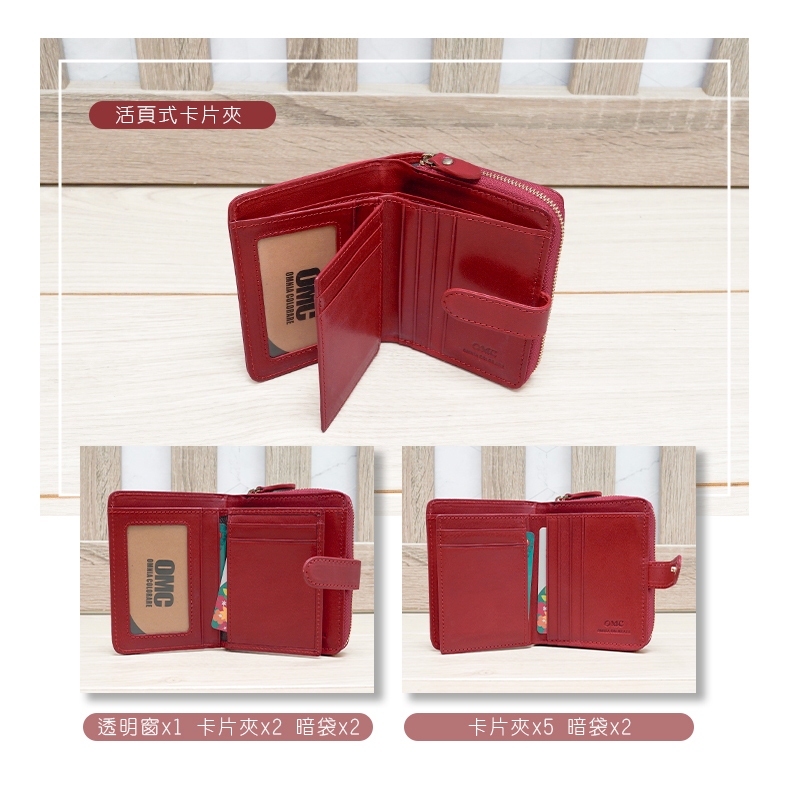 【OMC】(紅色)義大利植鞣革豎款活頁牛皮短夾95171