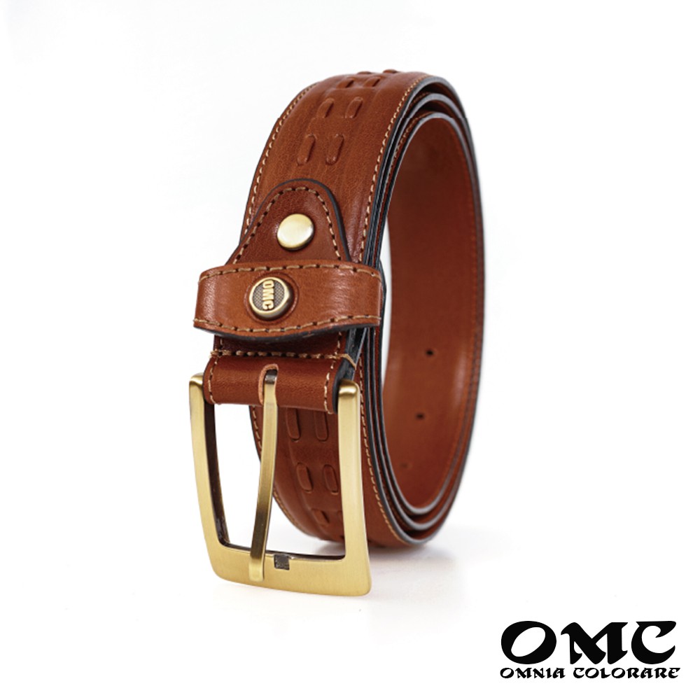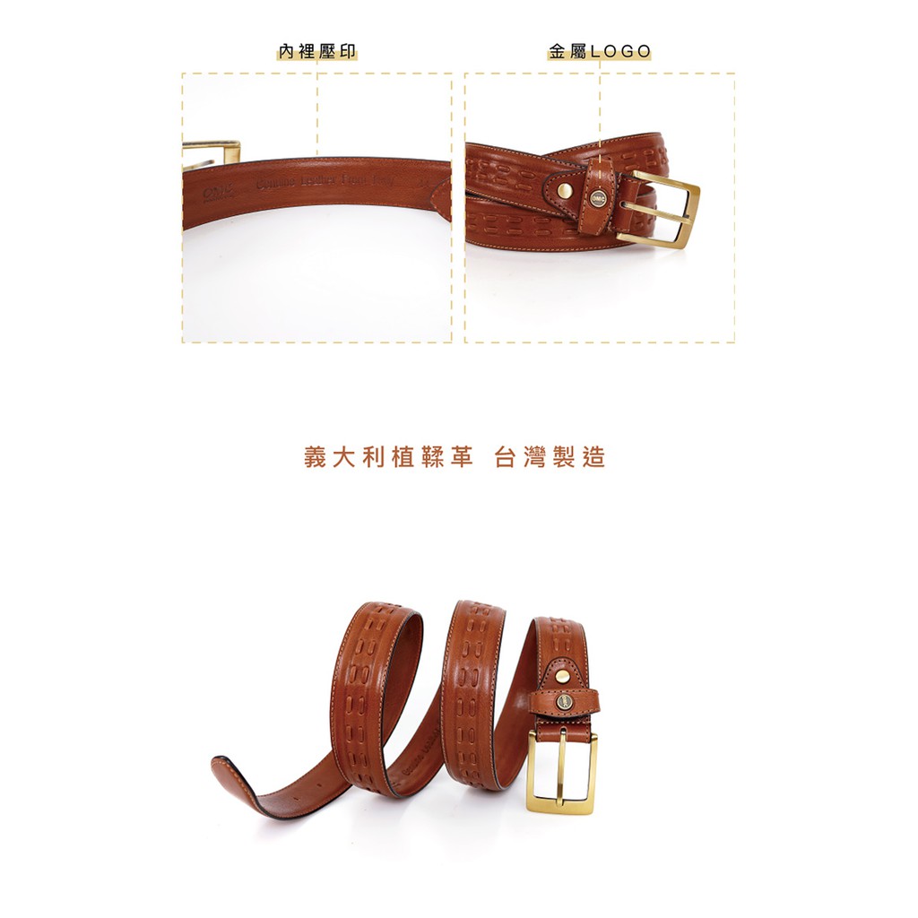 【OMC】義大利植鞣革vegetable tanned leather-線段編織-全牛皮休閒皮帶