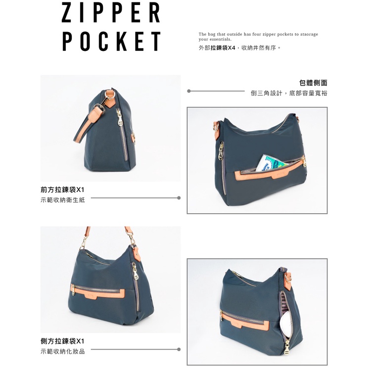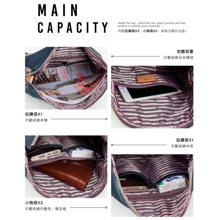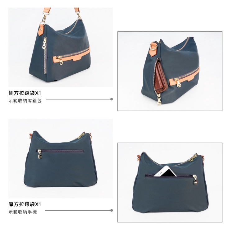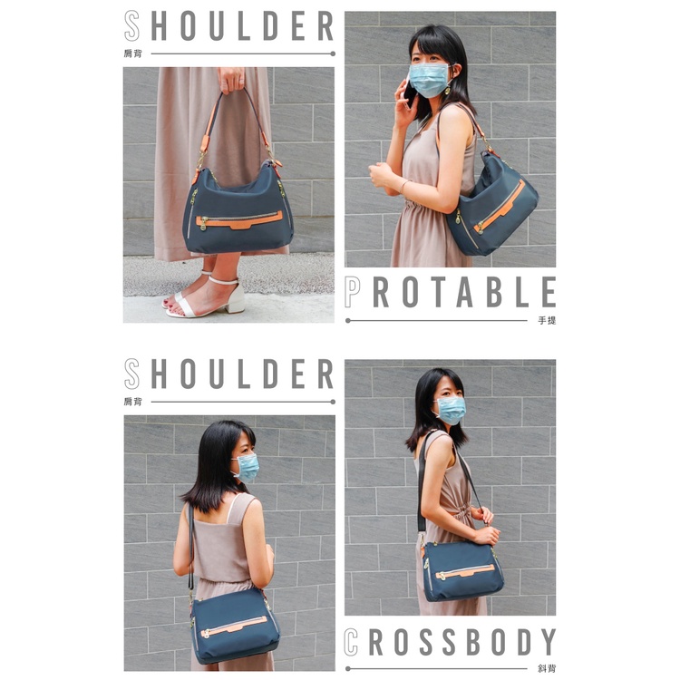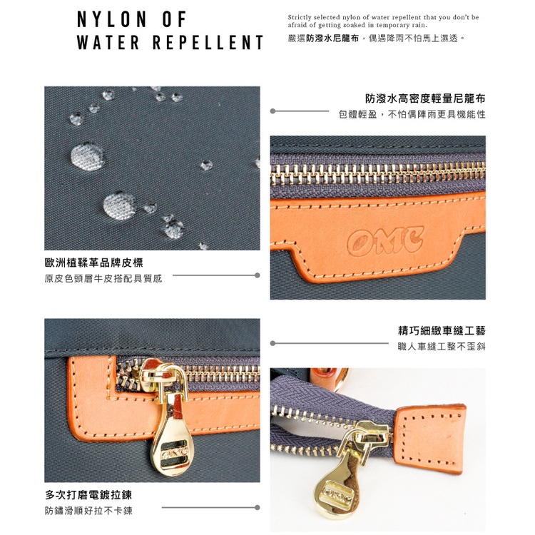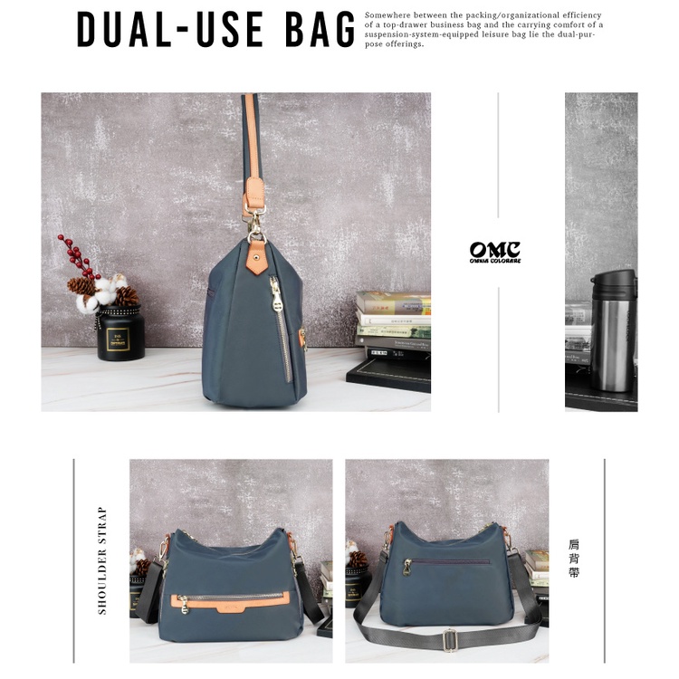 【OMC】側拉鍊大容量尼龍兩用包(灰色)