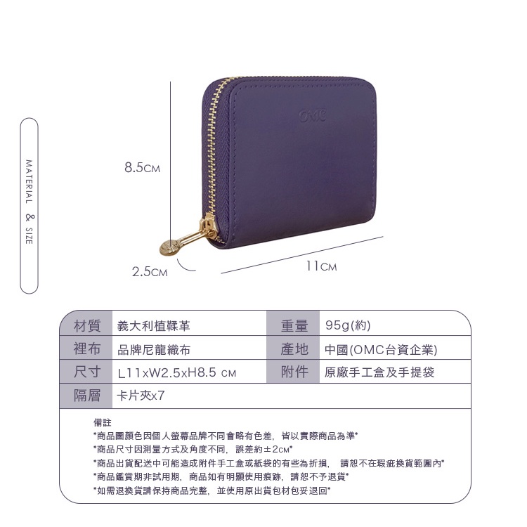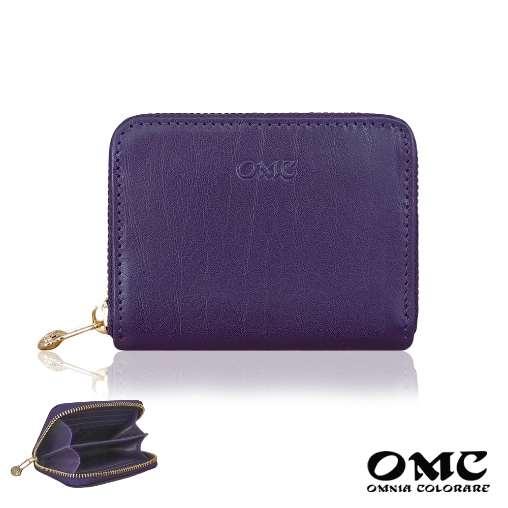 【OMC】義大利植鞣革7卡位牛皮卡片零錢包95025-紫色