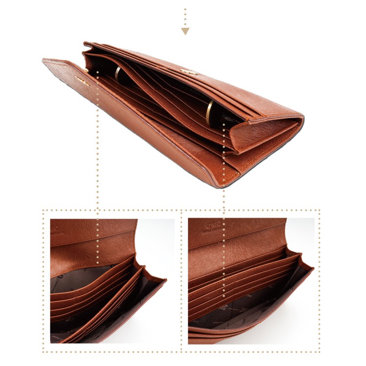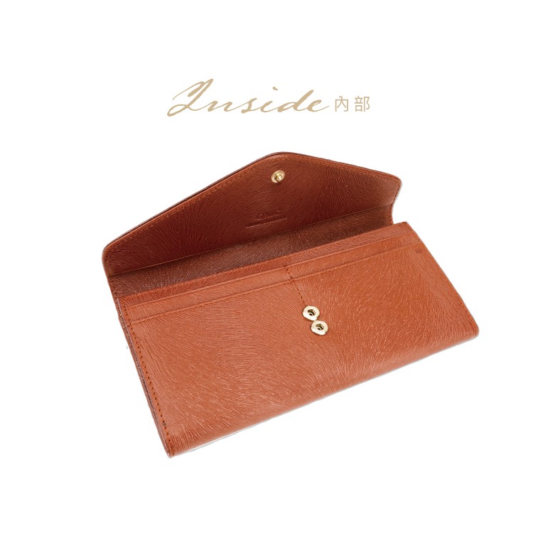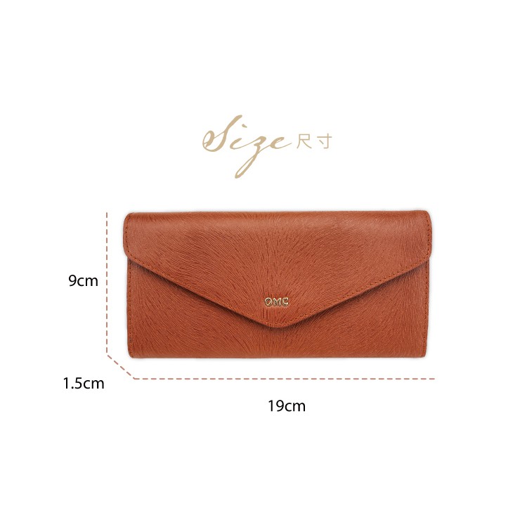 【OMC】16卡馬鬃紋信封式兩折牛皮長夾(棕色)