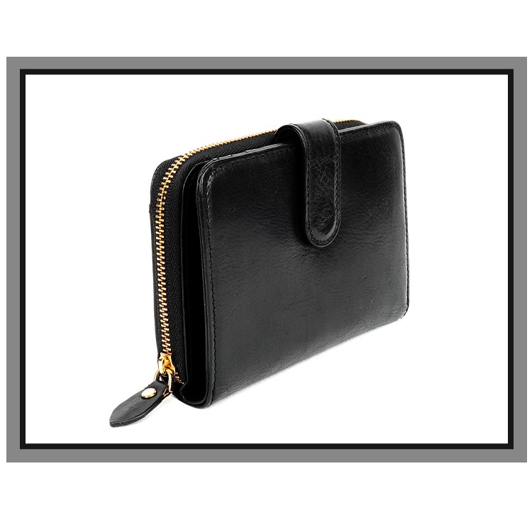 【OMC】微NG福利品-新品-原廠價3900-舌扣零錢袋牛皮中夾-黑色