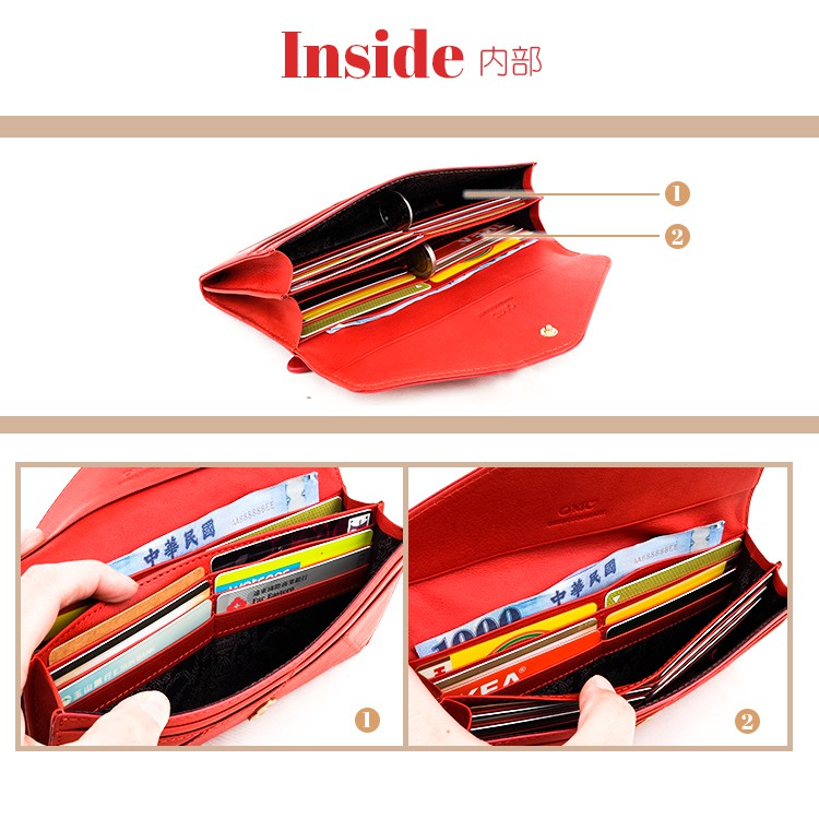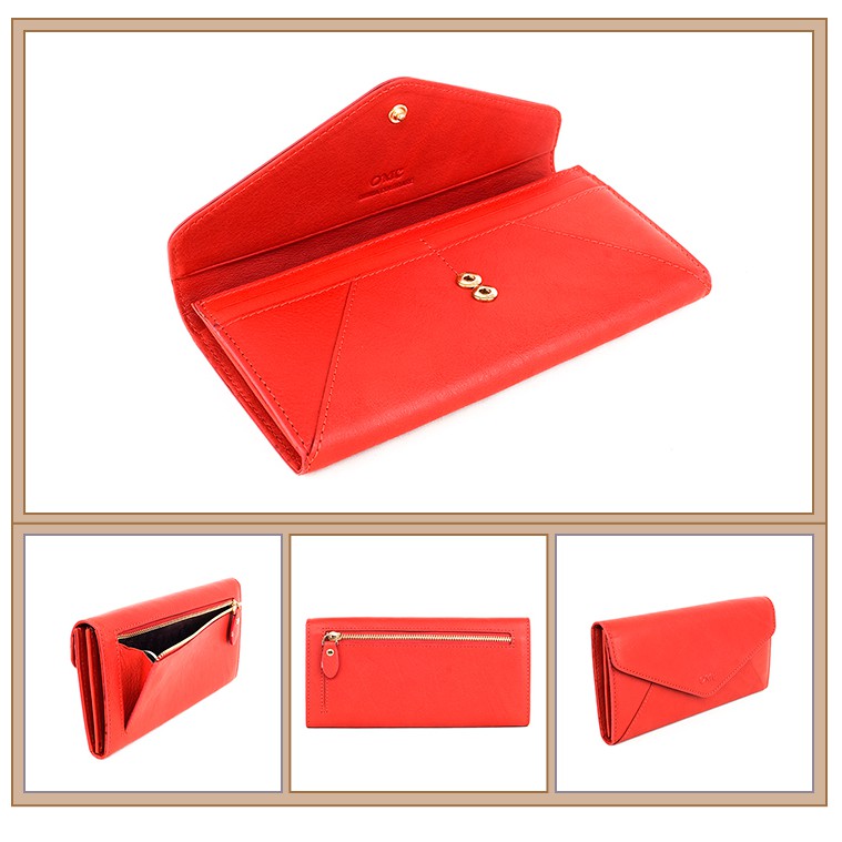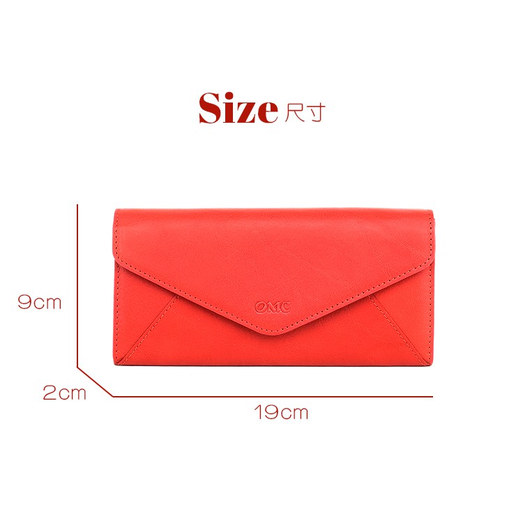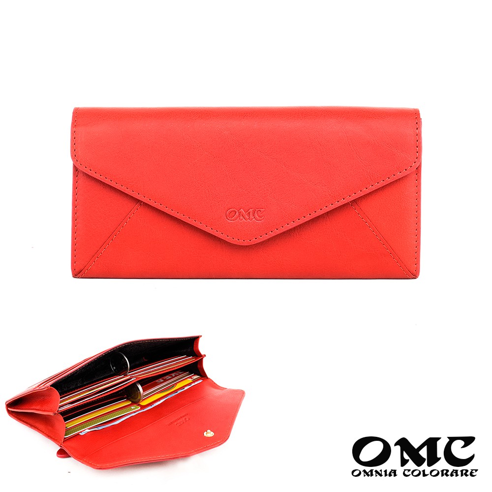 【OMC】NG福利品-新品非二手-原廠價3680-義大利植鞣革信封式兩折牛皮長夾-紅色