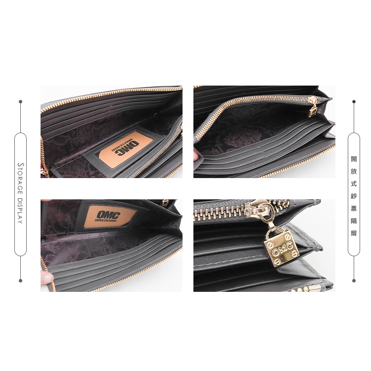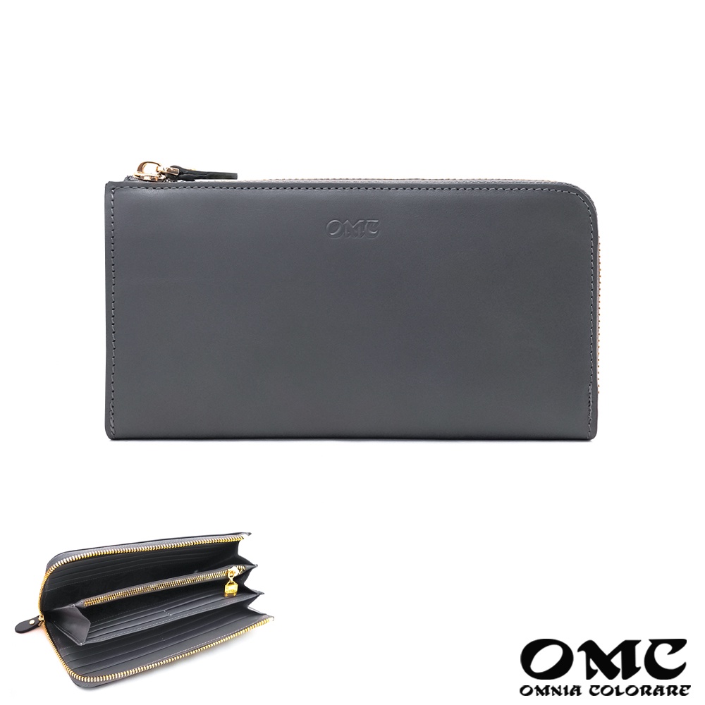 【OMC】義大利植鞣革18卡2照L拉鍊大容量牛皮長夾(灰色)