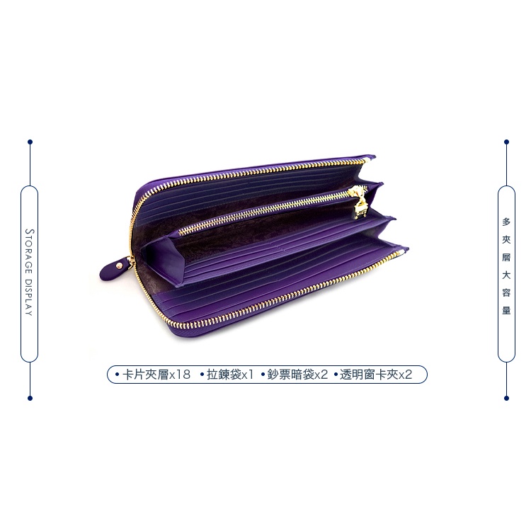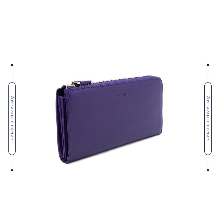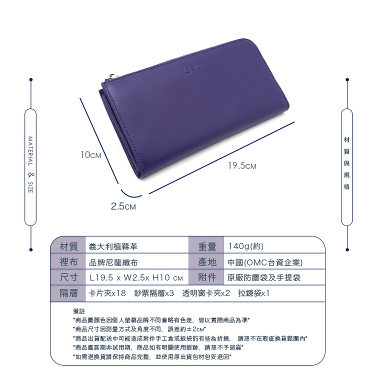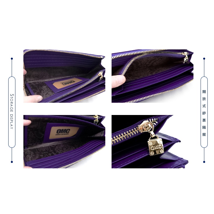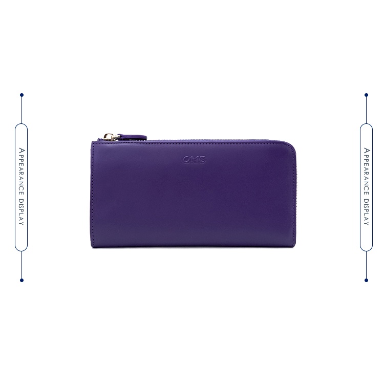 【OMC】義大利植鞣革18卡2照L型拉鍊牛皮長夾(紫色)