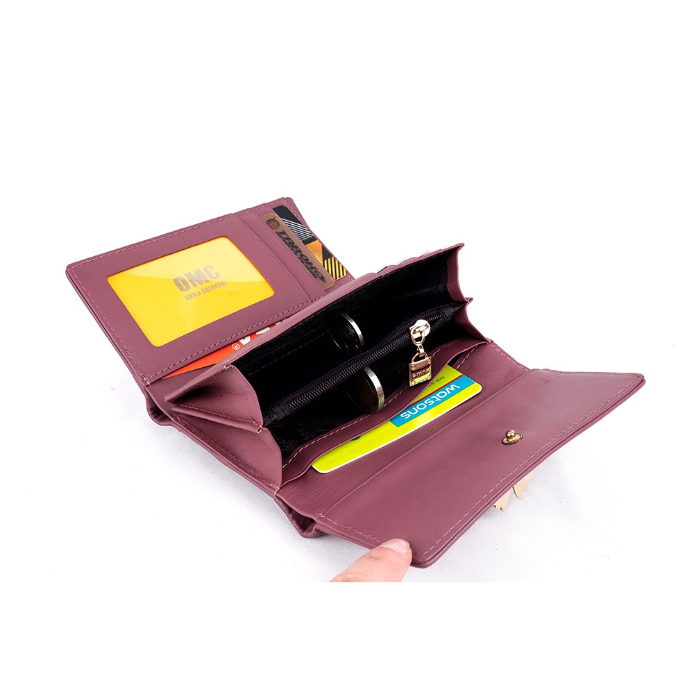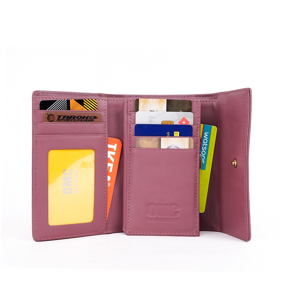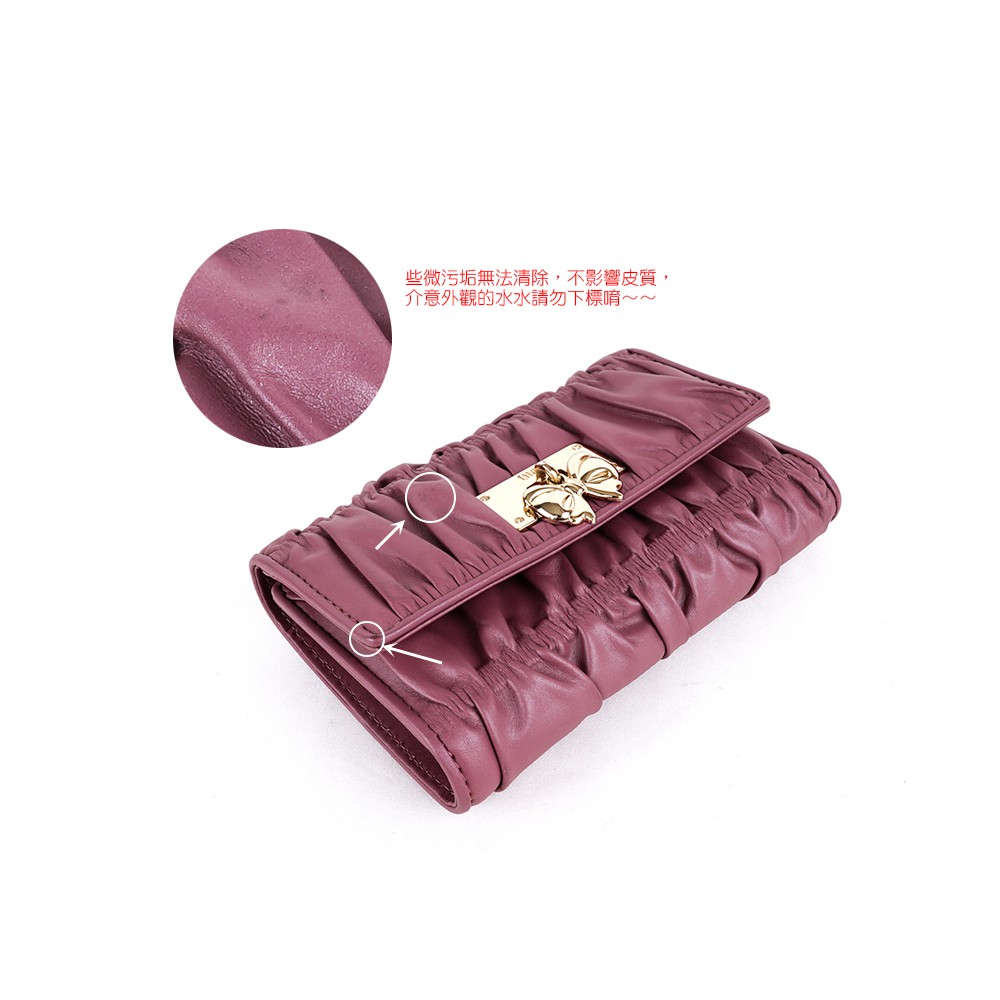 【OMC】微NG福利品-新品-皮面輕微斑點-原廠價3280-珠光抓皺牛皮中夾(豆沙粉)