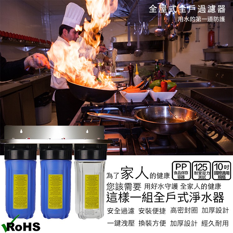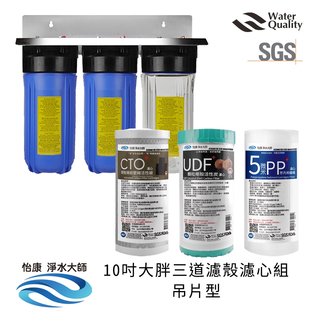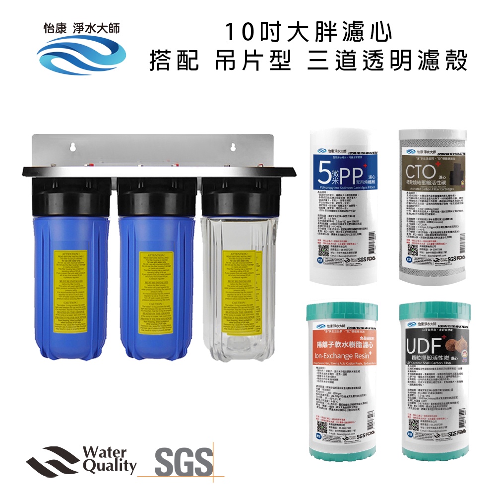 【怡康淨水】10吋大胖三道濾殼吊片組(透明)+濾心PP+UDF+CTO