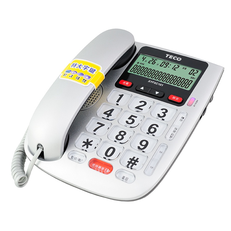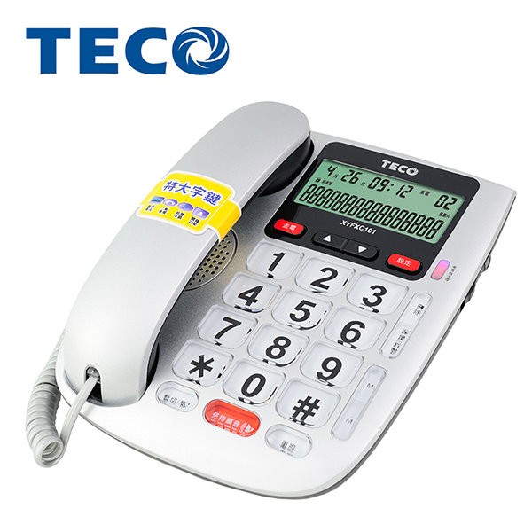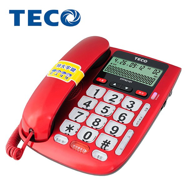 TECO 東元 來電顯示 有線電話XYFXC101 (閃亮銀/貴族紅) 大按鍵 大音量