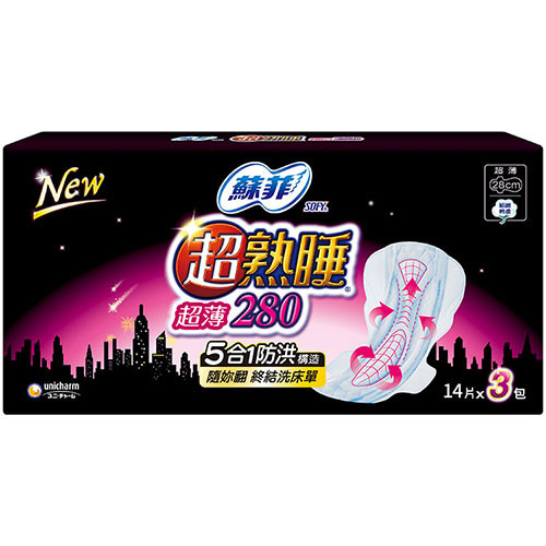蘇菲超熟睡超薄細緻棉柔28cm x 14片 x 3包【愛買】