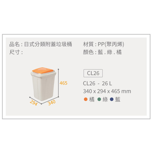 KEYWAY聯府 日式分類附蓋垃圾桶-26L(34x29.4x46.5cm)收納置物桶【愛買】