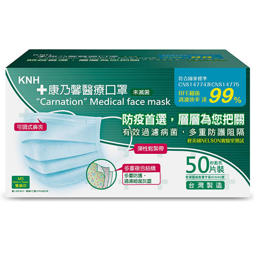 康乃馨醫療口罩(粉藍)50片/盒【愛買】