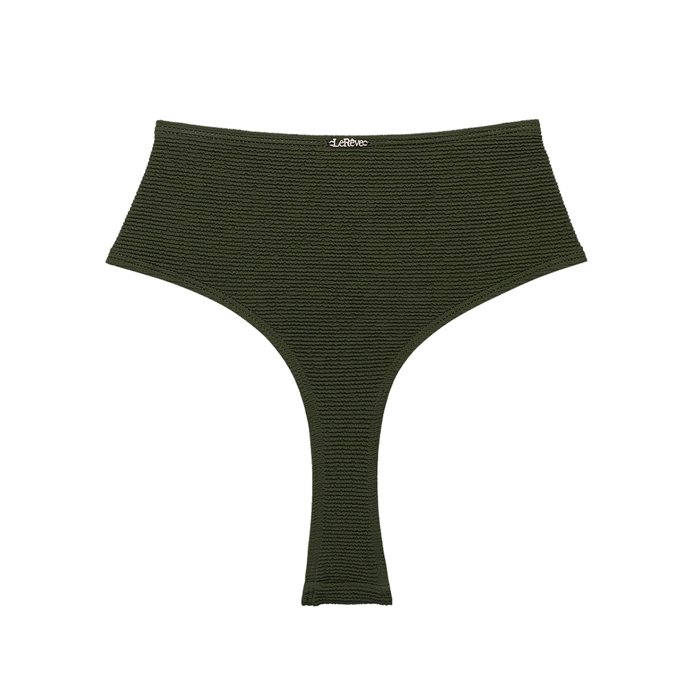 LeRêve|AIRise 極緻高衩丁字高腰泳褲|-橄欖 泡泡高彈布料 立體紋路 性感 蜜桃臀 挖屁款 高衩丁字 泳褲
