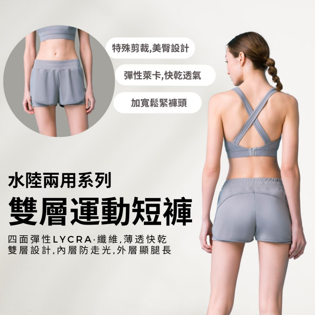 LeRêve Paris-Aero 法式美型雙層運動短褲 -灰色 水陸兩用 玩水 運動 溯溪 野溪溫泉